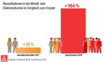 Neuaufnahmen in der Metall- und Elektroindustrie im Vergleich zum Vorjahr