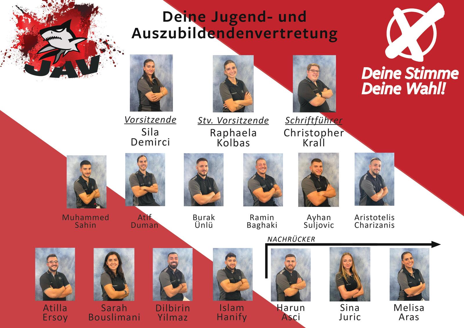 Seit dem 16.11.2022 hat sich die neue JAV konstituiert und somit stehen Vorsitzende Sila Demirci, stellvertretende Vorsitzende Raphaela Kolbas und Schriftführer Christopher Andree Krall für die nächsten zwei Jahre fest. Unsere JAV besteht außerdem noch aus folgenden Mitgliedern: