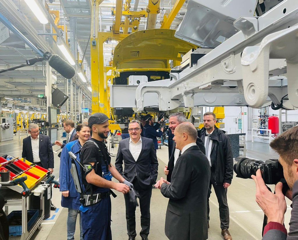 Auch bei Mercedes-Benz Vans ist die Elektro-Transformation in vollem Gang, davon konnte sich Bundeskanzler Olaf Scholz bei seiner Stippvisite und Probefahrt im Van-Werk in Ludwigsfelde überzeugen. Die gut 2.000 Beschäftigten am brandenburgischen Standort haben letztes Jahr rund 50.000 Sprinter gefertigt, die für viele verschiedene Fahrzeugvarianten die Basis bilden, wie zum Beispiel für Ambulanzen, Kühlfahrzeuge oder auch Reisemobile.