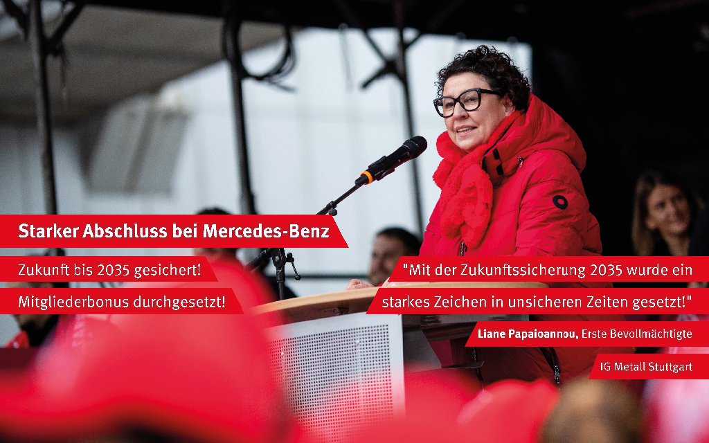 die Beschäftigungssicherung verlängert, sondern erstmalig auch ein Mitgliederbonus für IG Metall-Mitglieder bei Mercedes-Benz durchgesetzt. Gewerkschaftliches Engagement soll so gewürdigt und anerkannt werden.