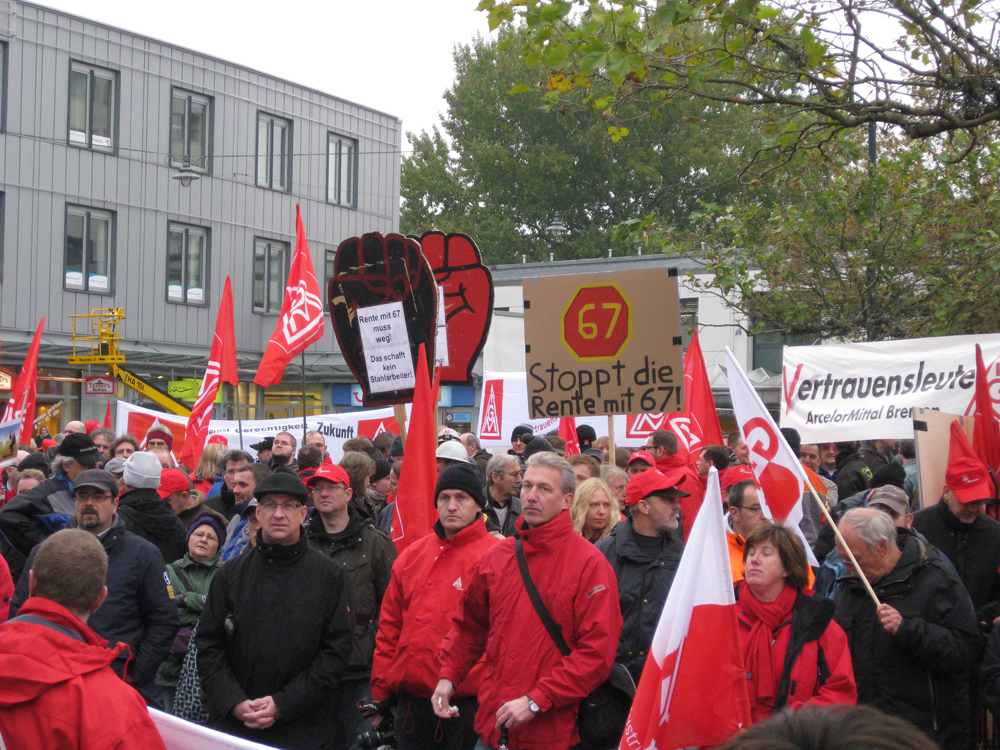 "Die Empörung über die "Rente mit 67" sitzt tief. Bei Daimler ist es zu Produktionsausfällen gekommen, weil sich Beschäftigte an dem Protest beteiligen wollten", sagte Volker Stahmann , 2. Bevollmächtigter der IG
