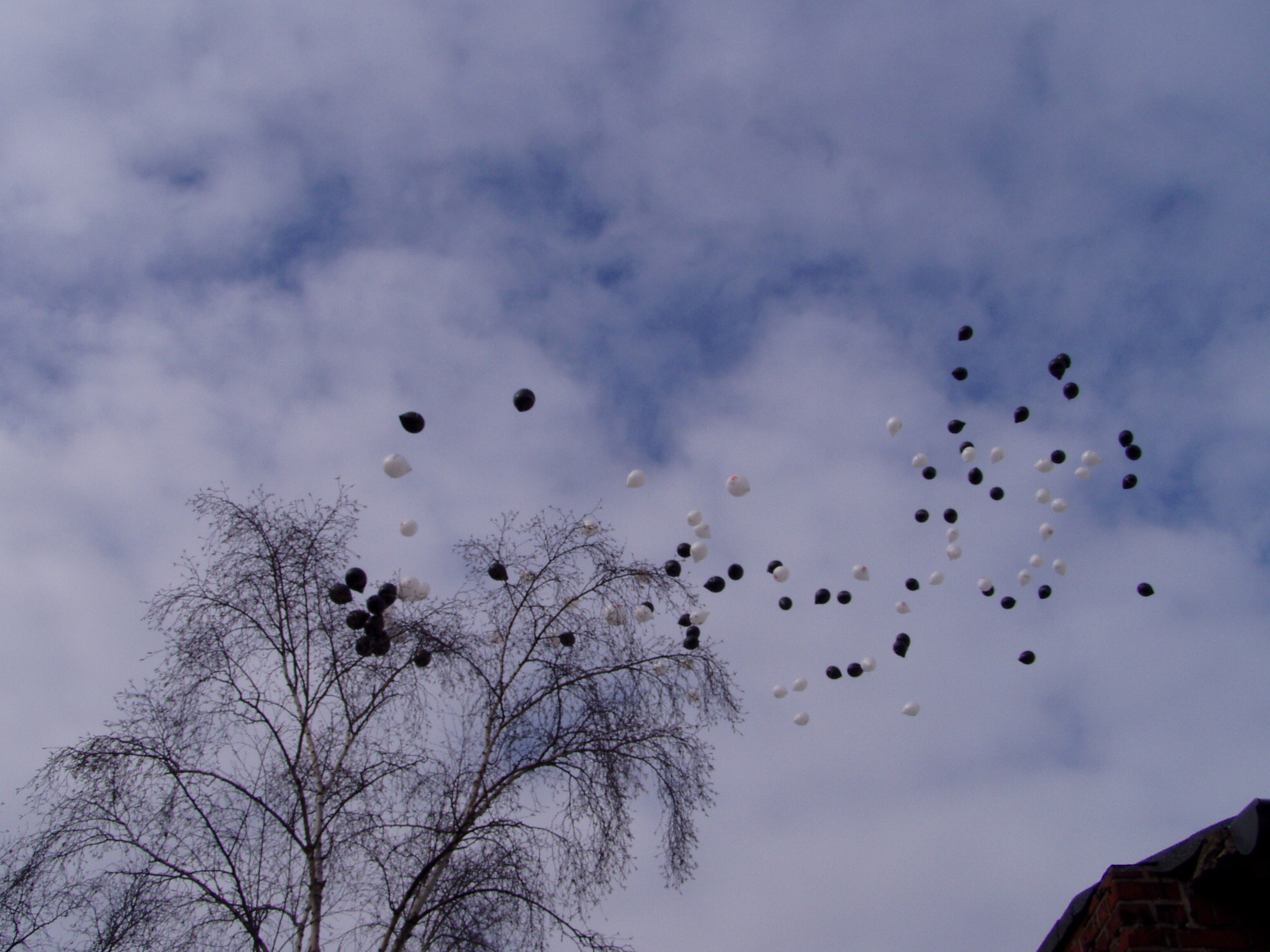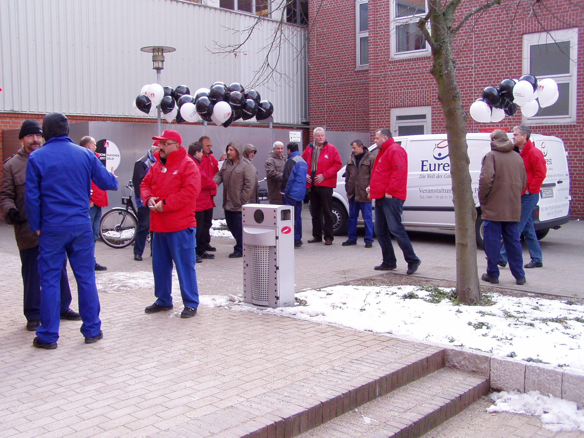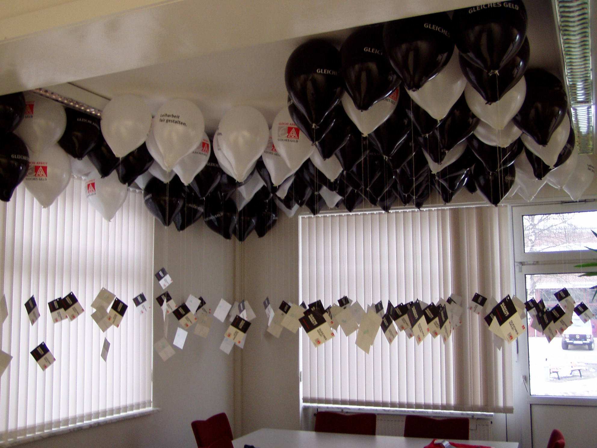 Symbolisch wurden am Mittag für die 124 Leiharbeiter des Werkes 124 Luftballons gestartet, um die Botschaft: Gleiche Arbeit / Gleiches Geld zu verbreiten.