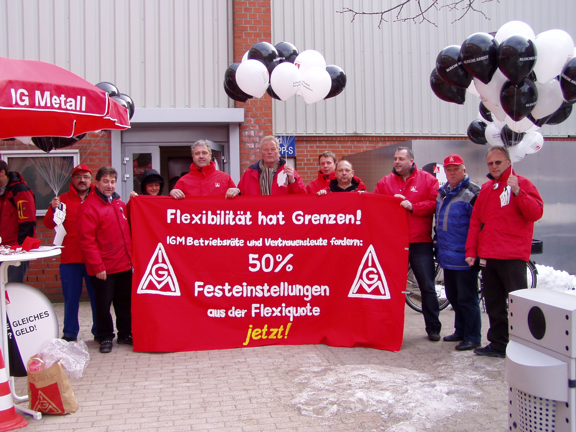 Leiharbeit darf nicht zum Abbau von Stammarbeitsplätzen führen, dies war die einhellige Meinung aller Kollegen, die am Infostand ins Gespräch kamen. An diesem Aktionstag konnten wir ca. 1200 Leute erreichen.