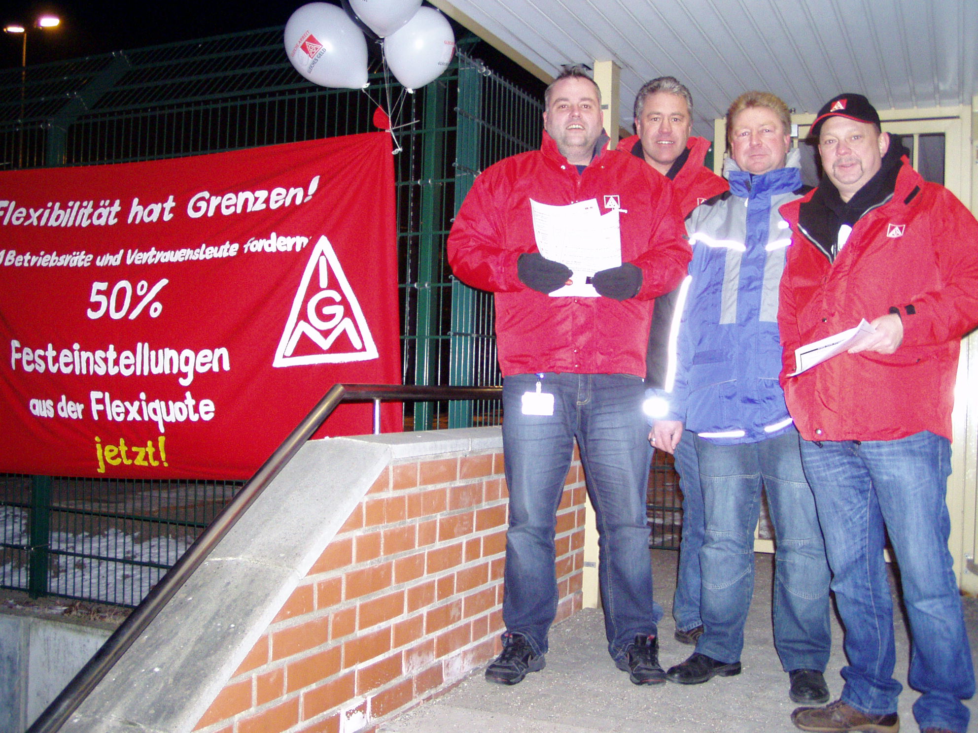 Zuerst wurde über die derzeitige politische Situation informiert, um dann die Forderung für Festeinstellungen zu plakatieren. Hierüber führt der Betriebsrat in der nächsten Woche Gespräche mit der Geschäftsleitung.