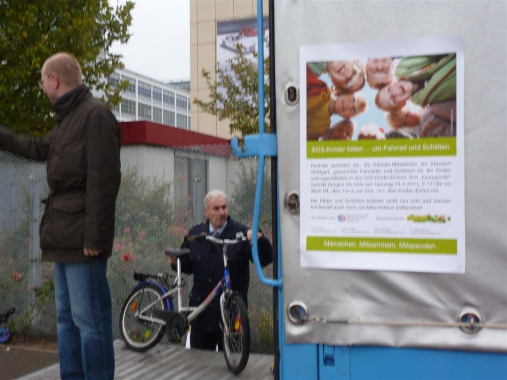 Unter dem Motto "SOS-Kinderdörfer bitten ... um Fahrrad und Schlitten" sammelten die Beschäftigten am Standort Sindelfingen, gebrauchte Fahrräder und Schlitten für Kinder und Jugendliche in SOS-Kinderdörfern.