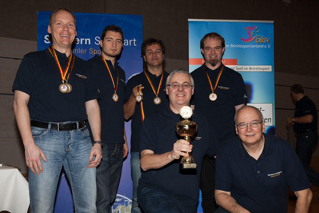 Unten im Bild-Anhang die Mitglieder der Schachsparte des SG Stern die die Deutsche Betriebssportmeisterschaft gewonnen haben. Hintere Reihe von links nach rechts: Ralf Müller, Stanislav Sokratov, Christoph Steinhart und Martin Landenberger. Vorne: Spartenleiter Udo Bangert und sein Stellvertreter Bernd Wepfer. Nicht auf dem Bild sind die Meistertitelträger Karsten Volke und Josef Gheng.