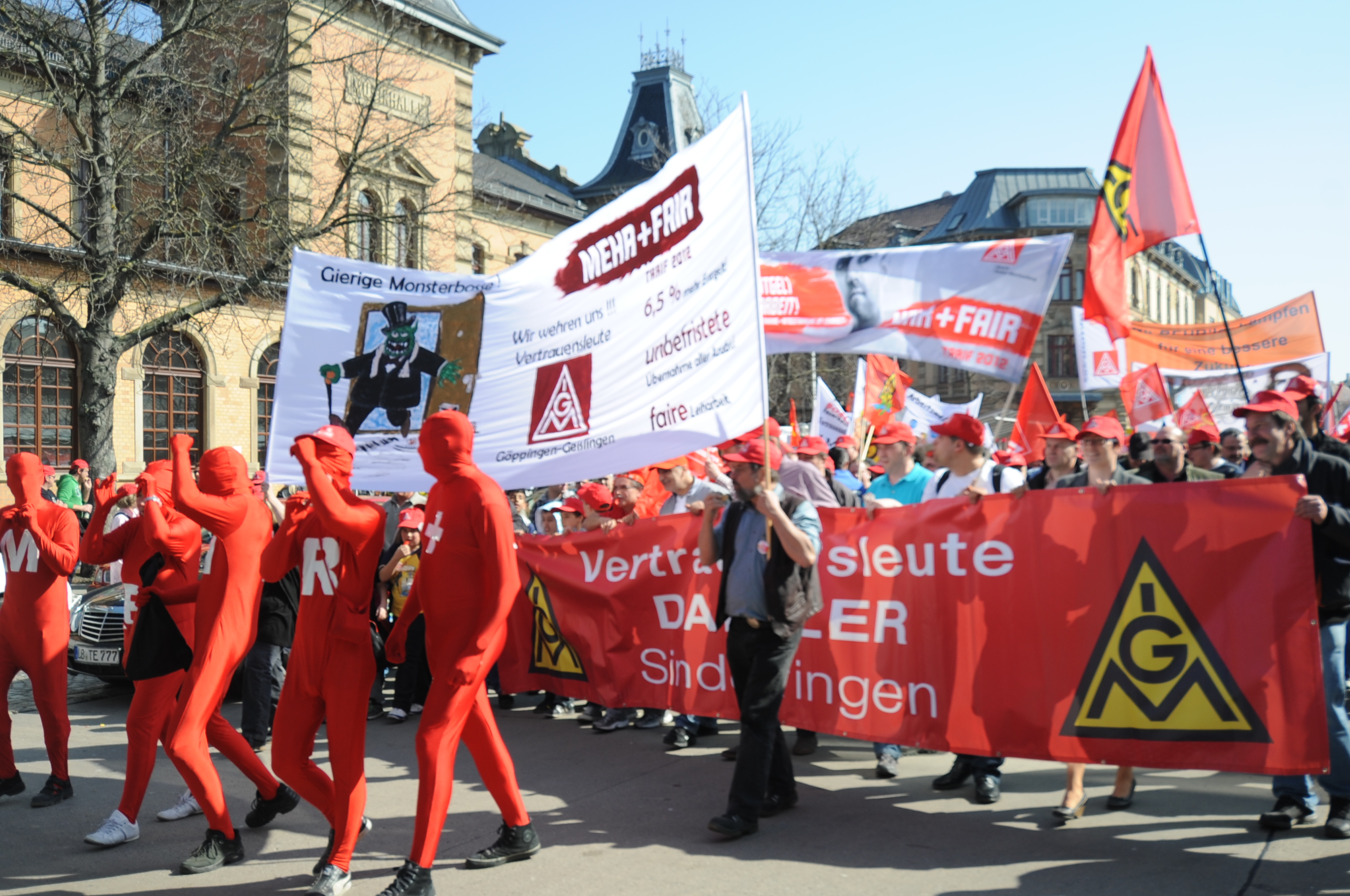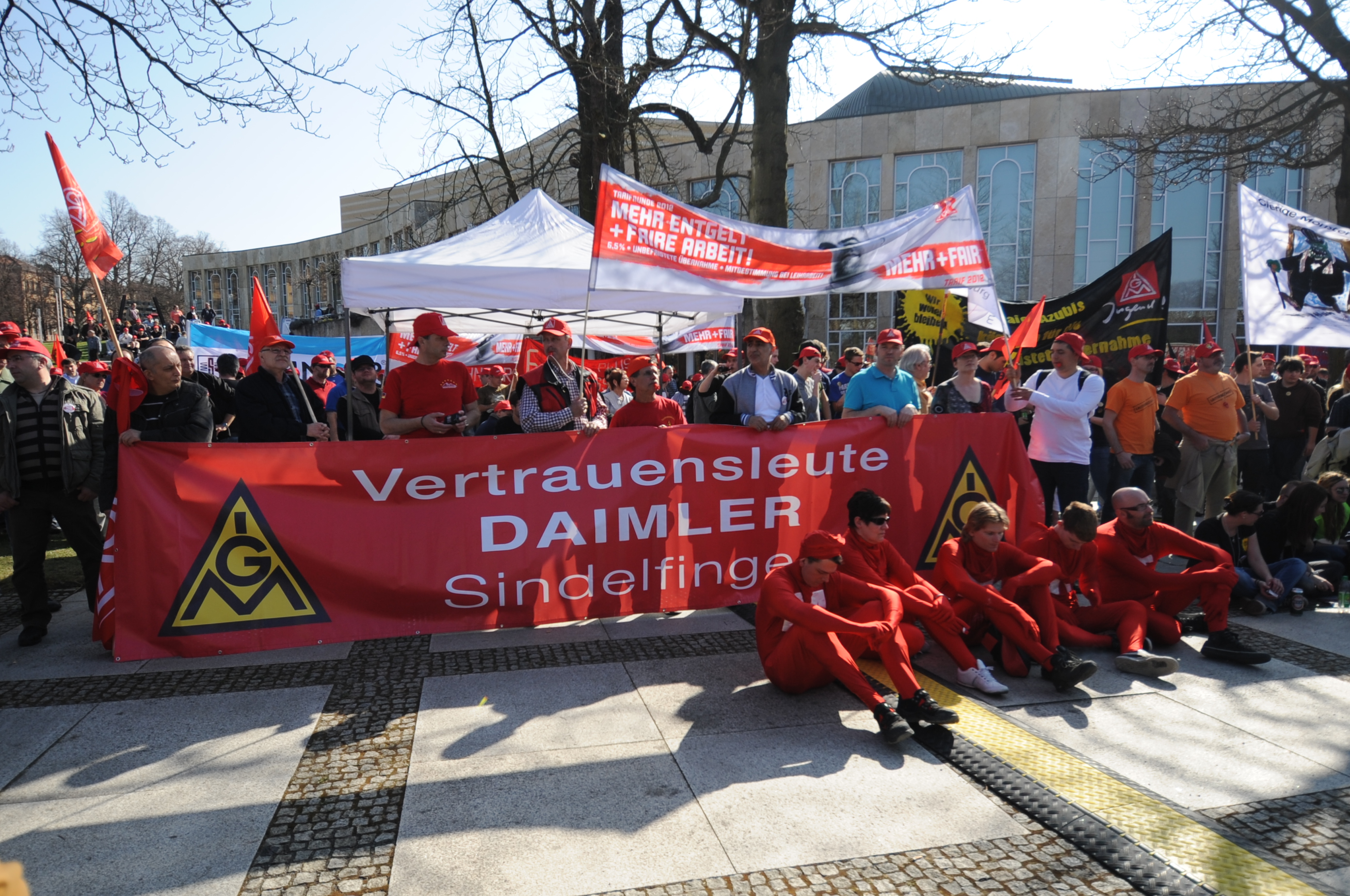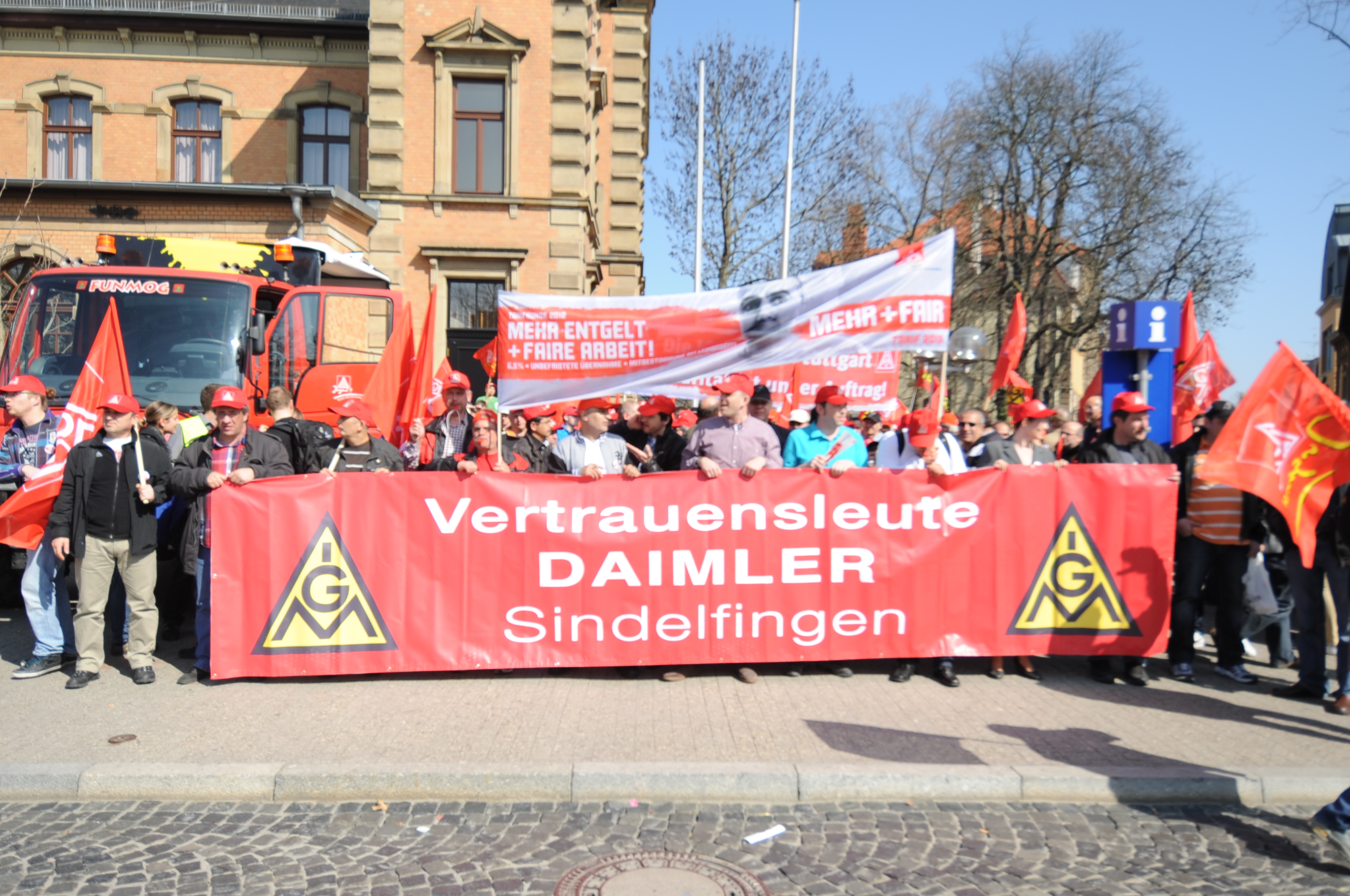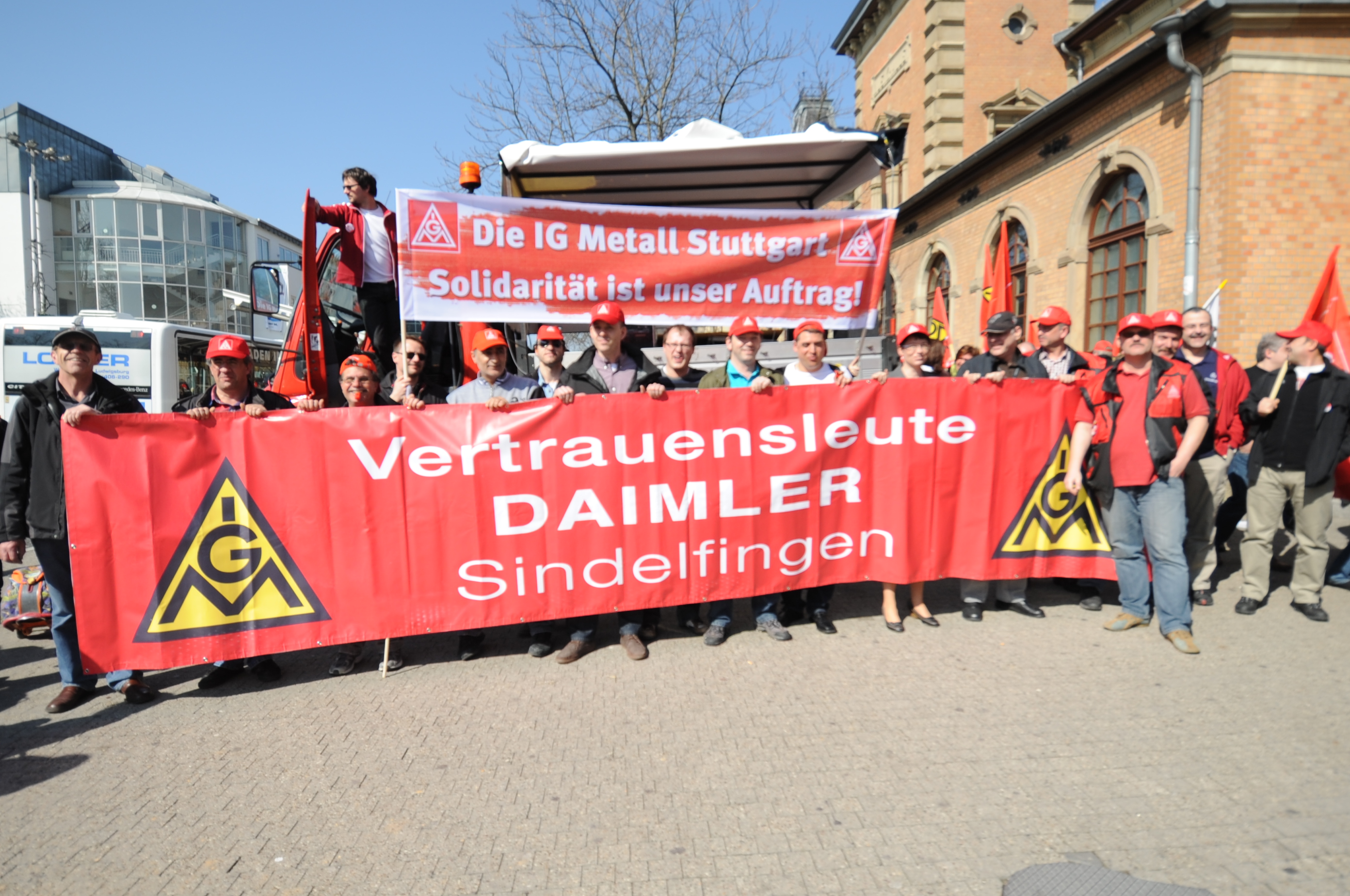 Vorne mit dabei die IG Metaller bei Daimler
