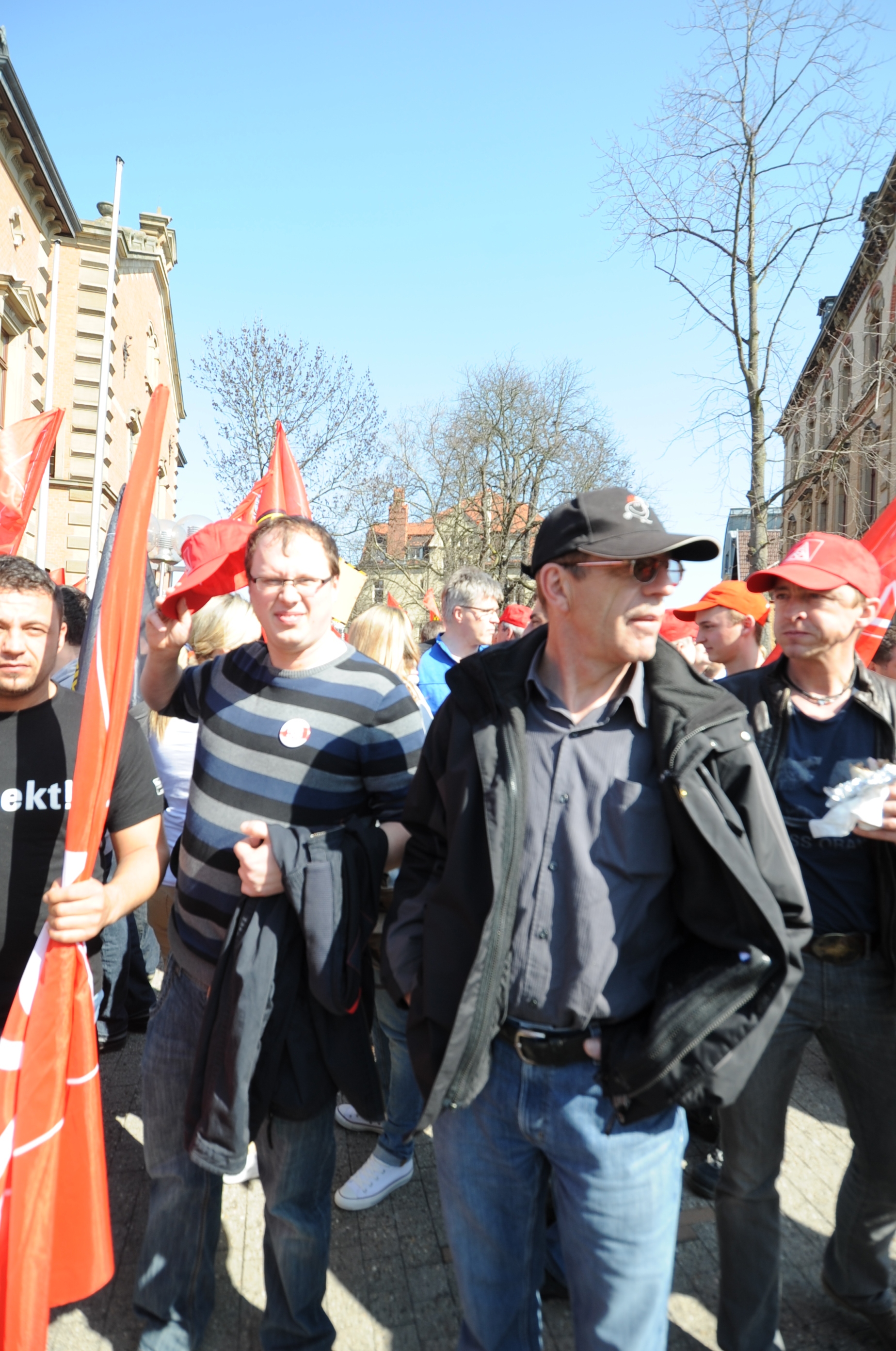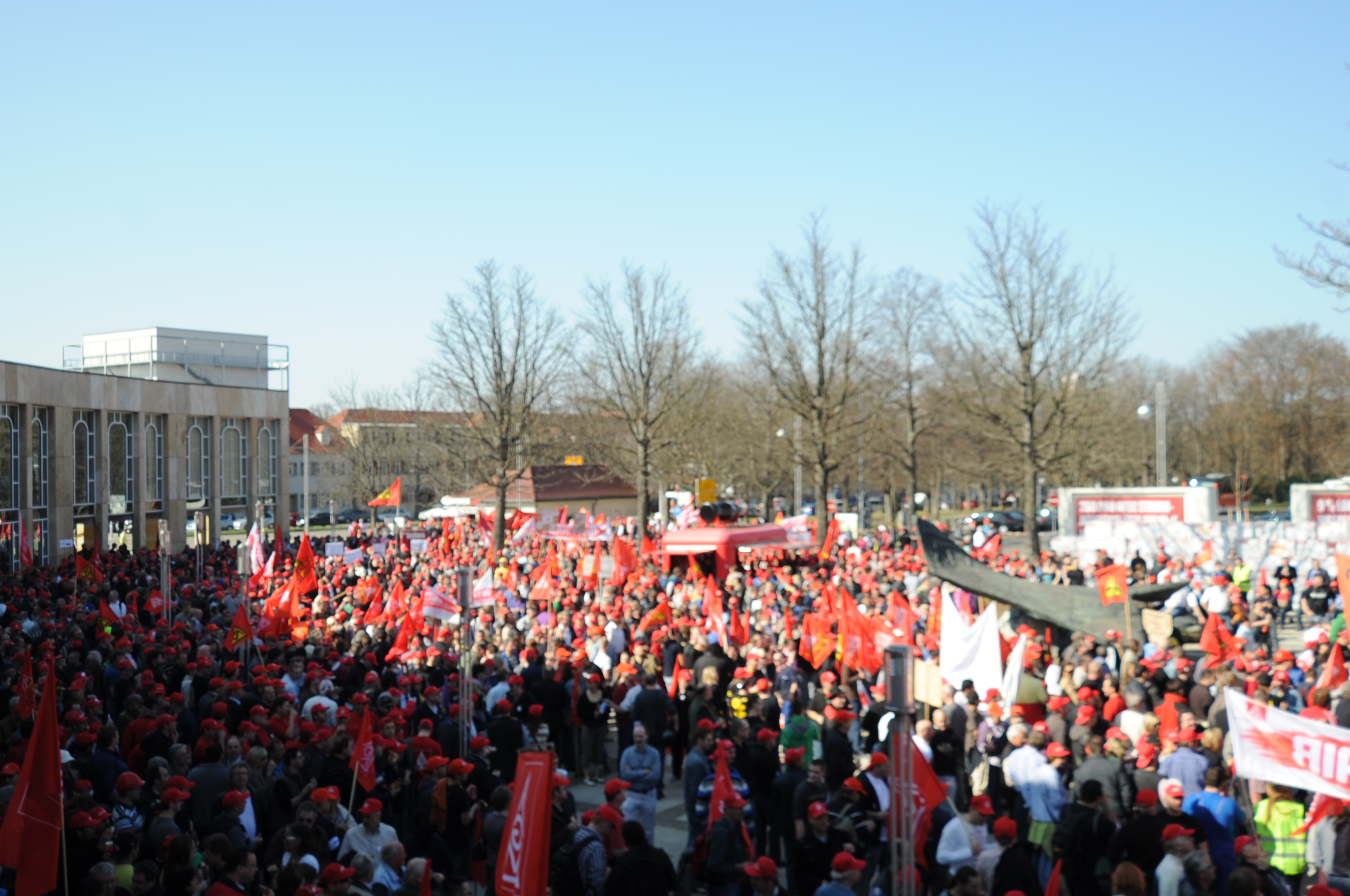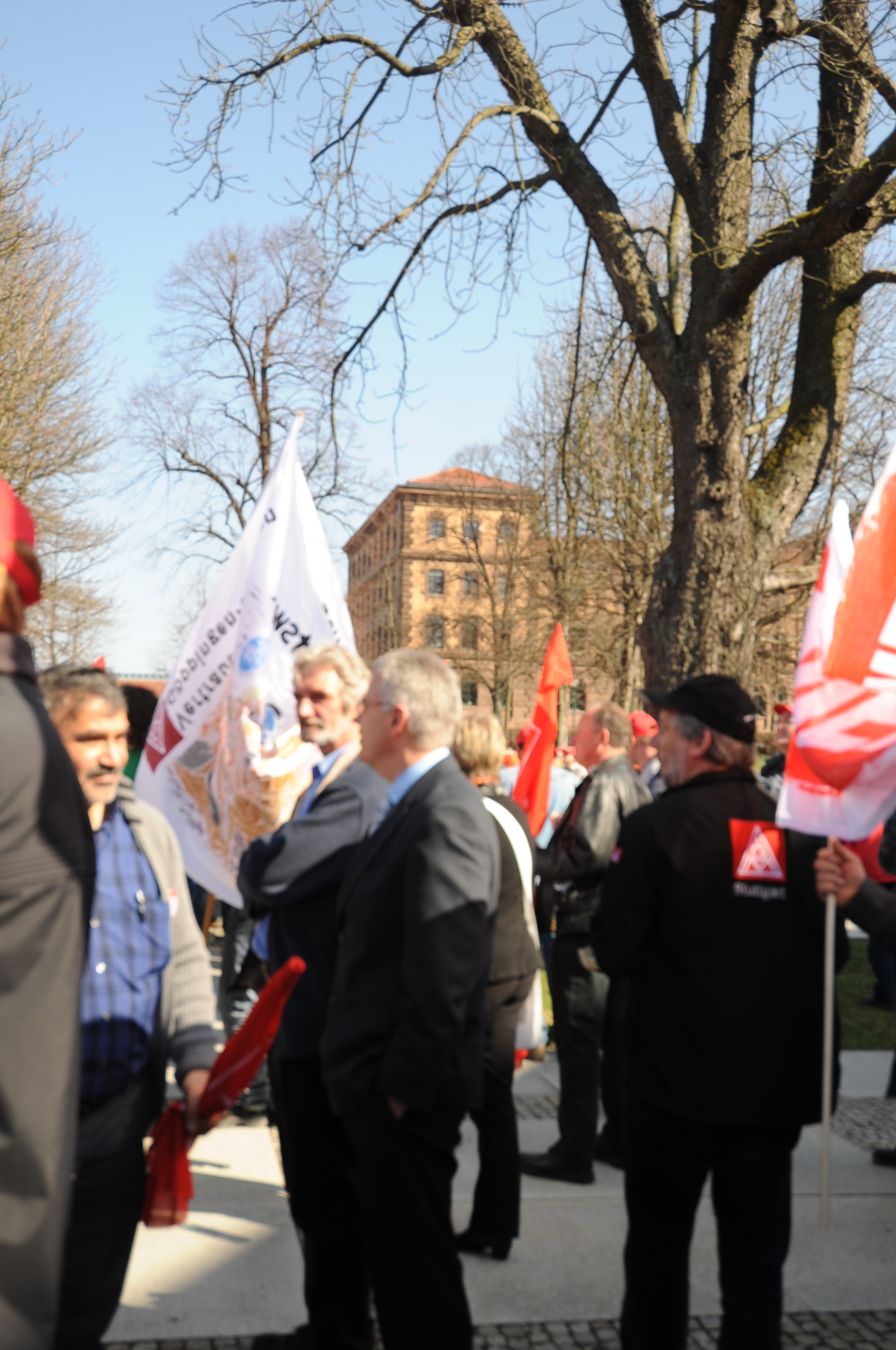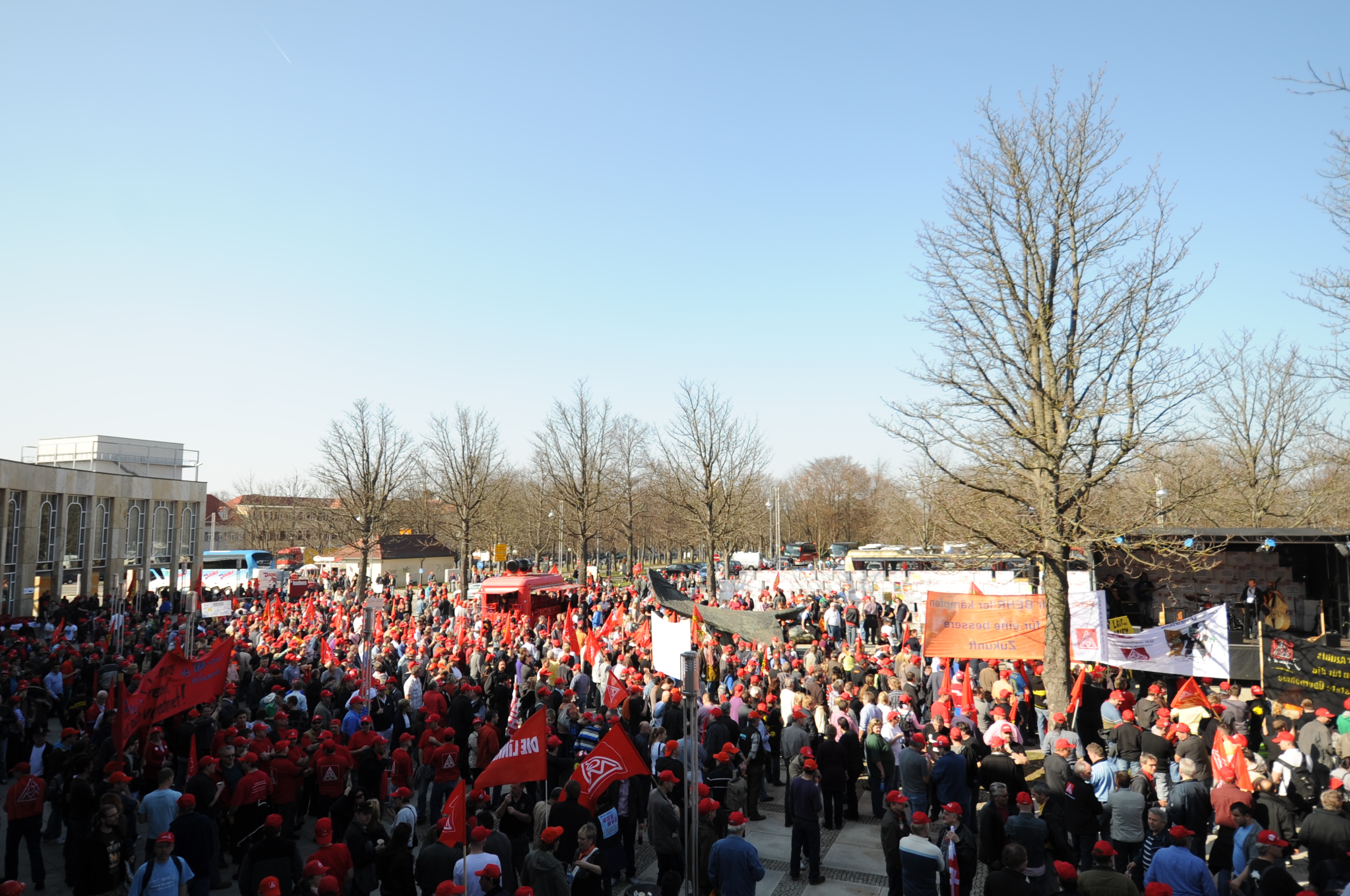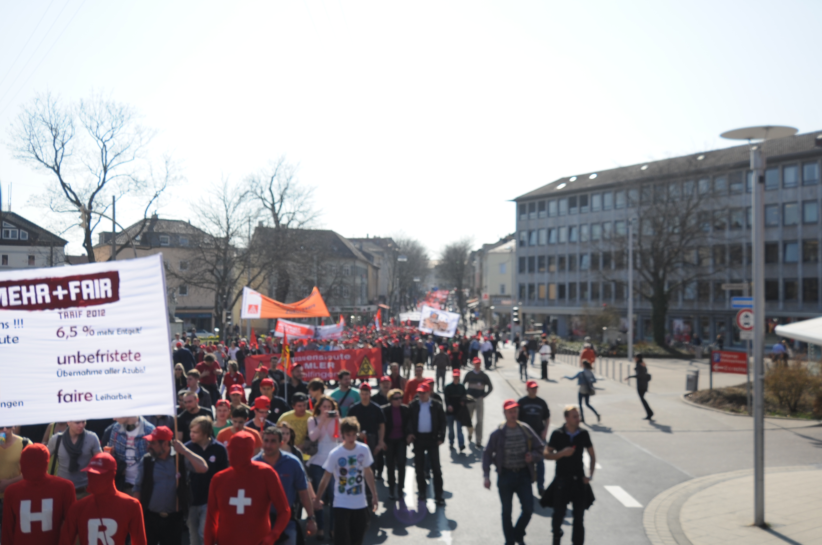 Vorne mit dabei die IG Metaller bei Daimler