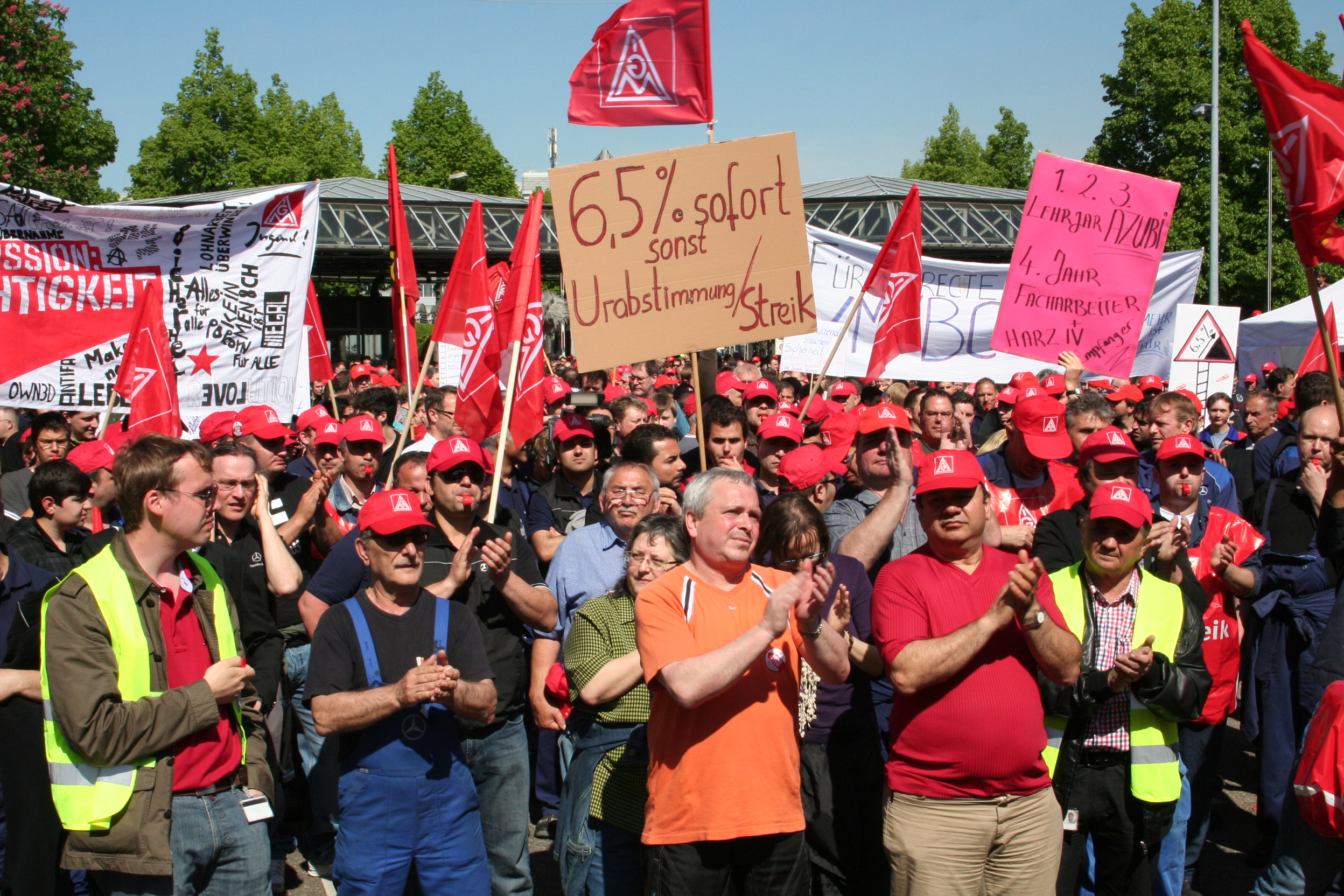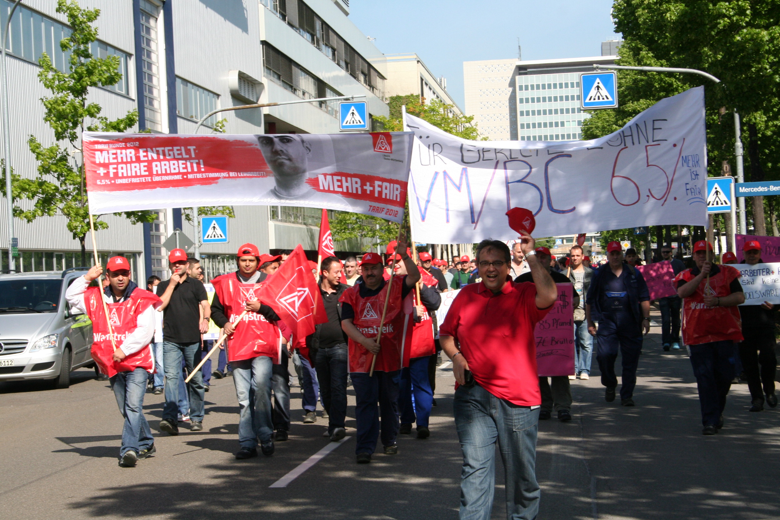 "Die Bezüge der DAX-Vorstände sind im vergangenen Jahr um durchschnittlich acht Prozent gestiegen. Und uns sollen gerade Mal 2,7 Prozent zugestanden werden. Die Gewinne in der Metall- und Elektroindustrie wurden von den Belegschaften nach der Krise gebracht. Jetzt ist es Zeit, uns an dem Aufschwung zu beteiligen", sagte Wolfgang Nieke, Betriebsratsvorsitzender des Mercedes-Benz Werkes Untertürkheim. "Das Angebot der Arbeitgeber ist weder fair noch gerecht. Deswegen sind unsere Warnstreiks heute und in den letzten Tagen die richtige Antwort darauf."