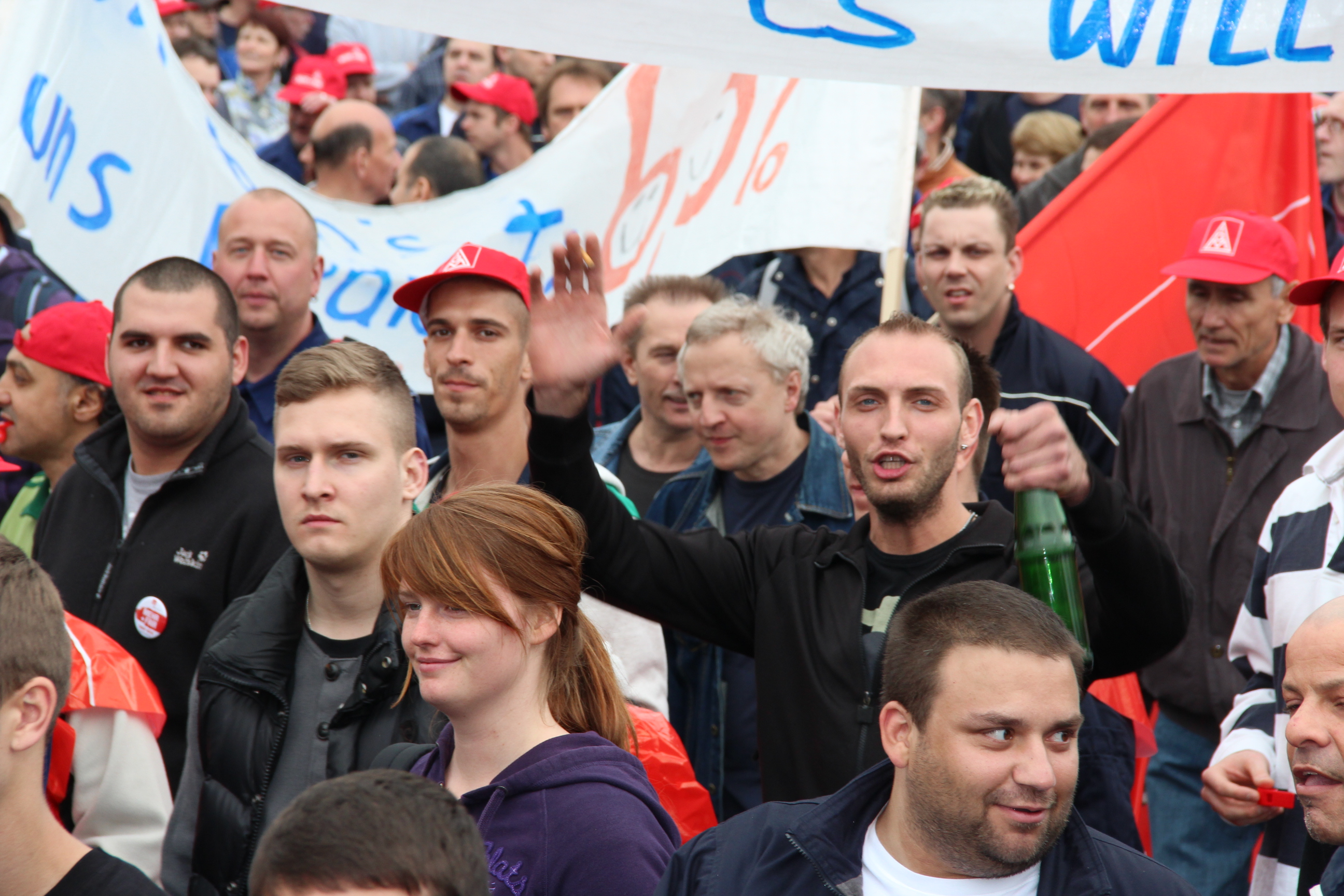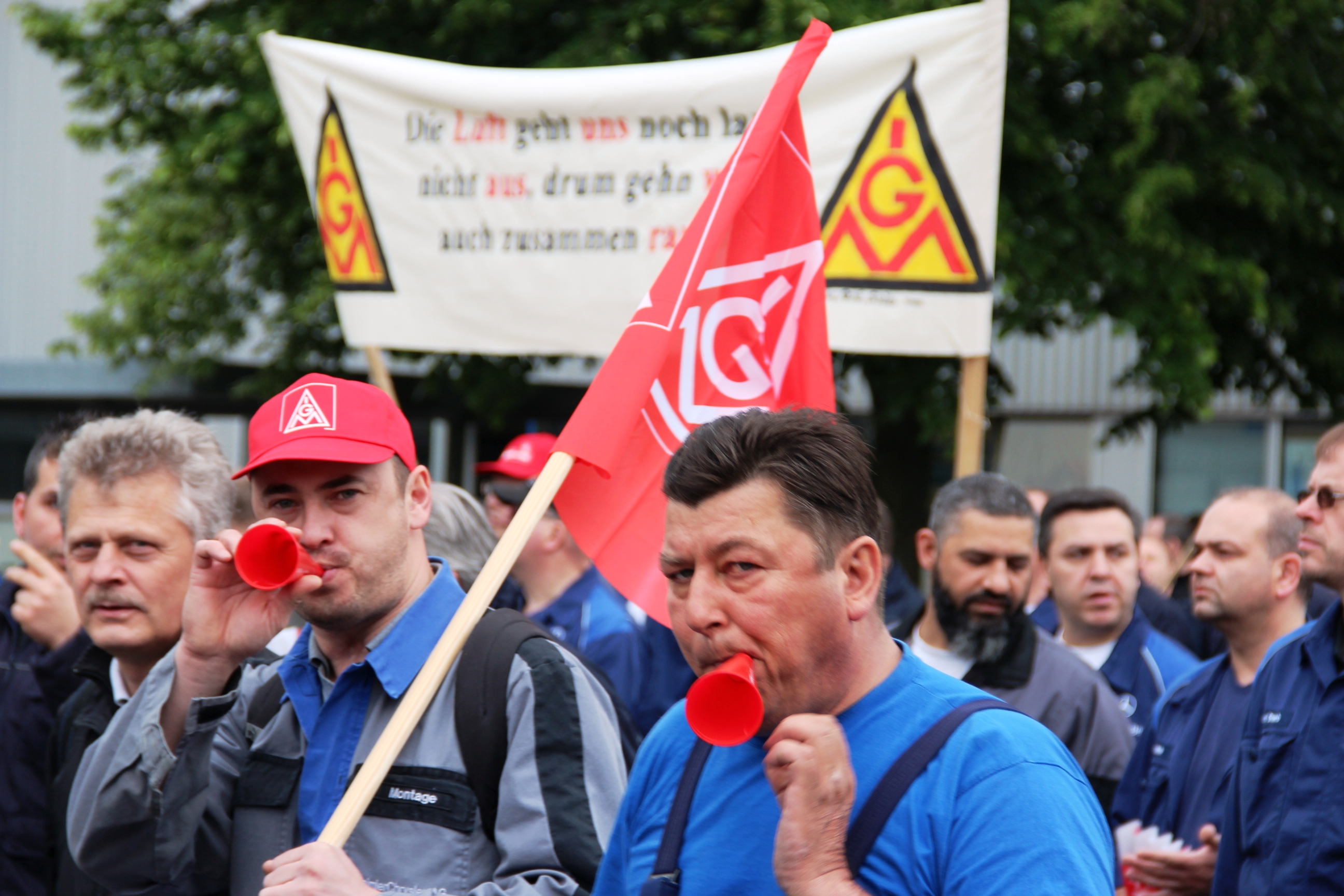 Rechtzeitig zu Beginn der heutigen Verhandlungen zur Tarifrunde der Metall- und Elektroindustrie demonstrierten die "Benzler" eindrucksvoll ihre Stärke.