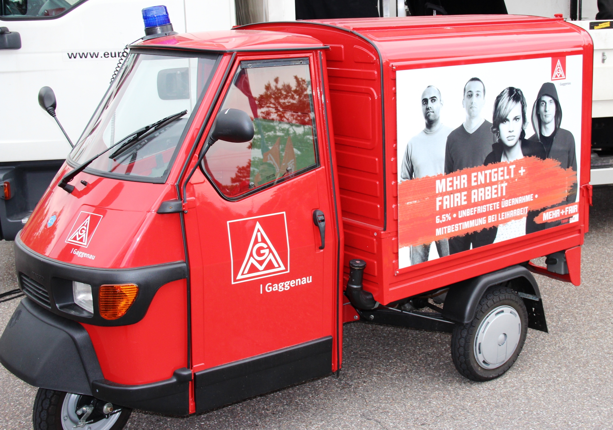 Gemeinsam mit den Beschäftigten des Mercedes-Benz Getriebewerkes Werkteil Rastatt trafen sie sich am Tor 1, um an der großen Kundgebung der IG Metall teilzunehmen.