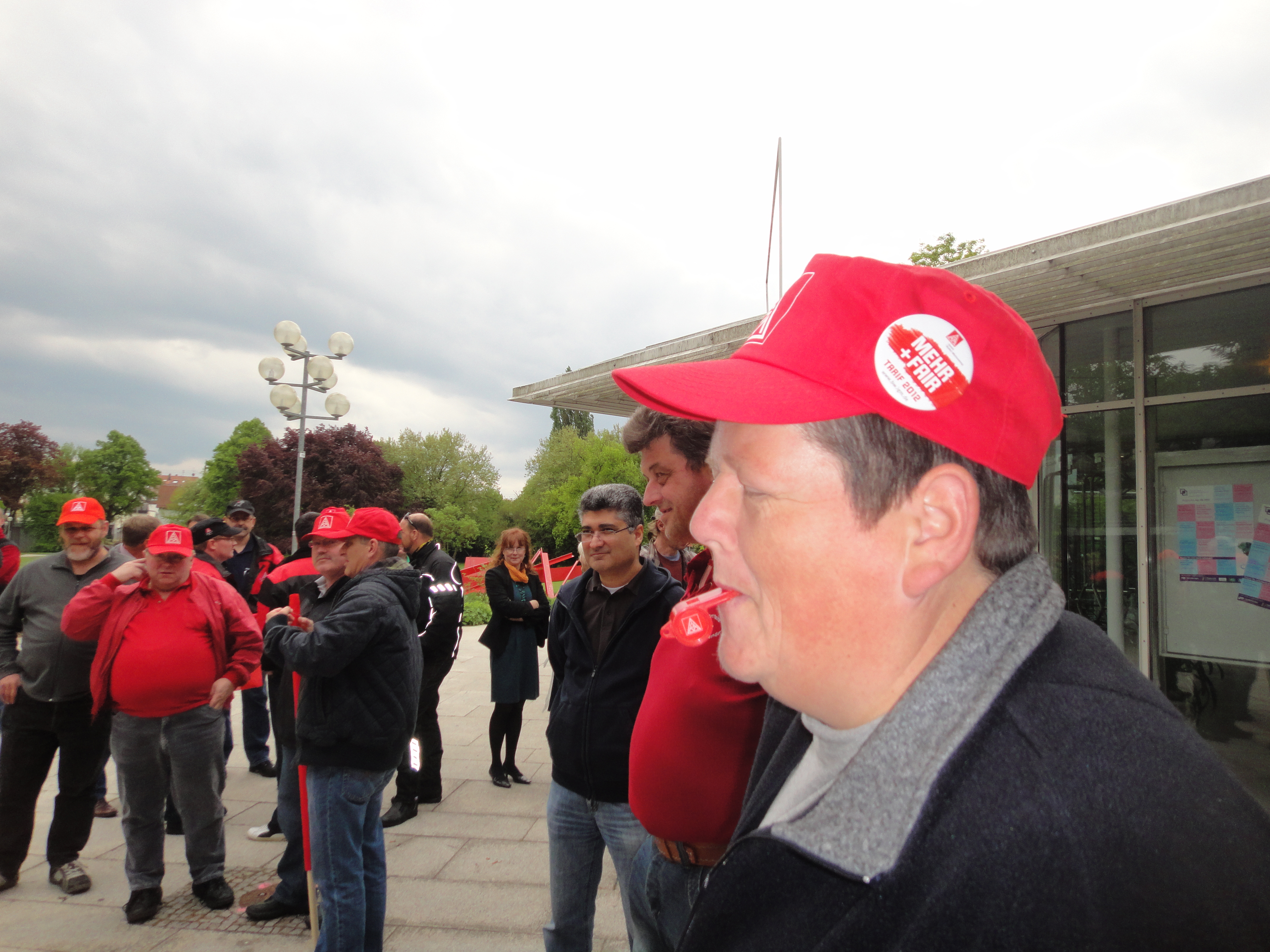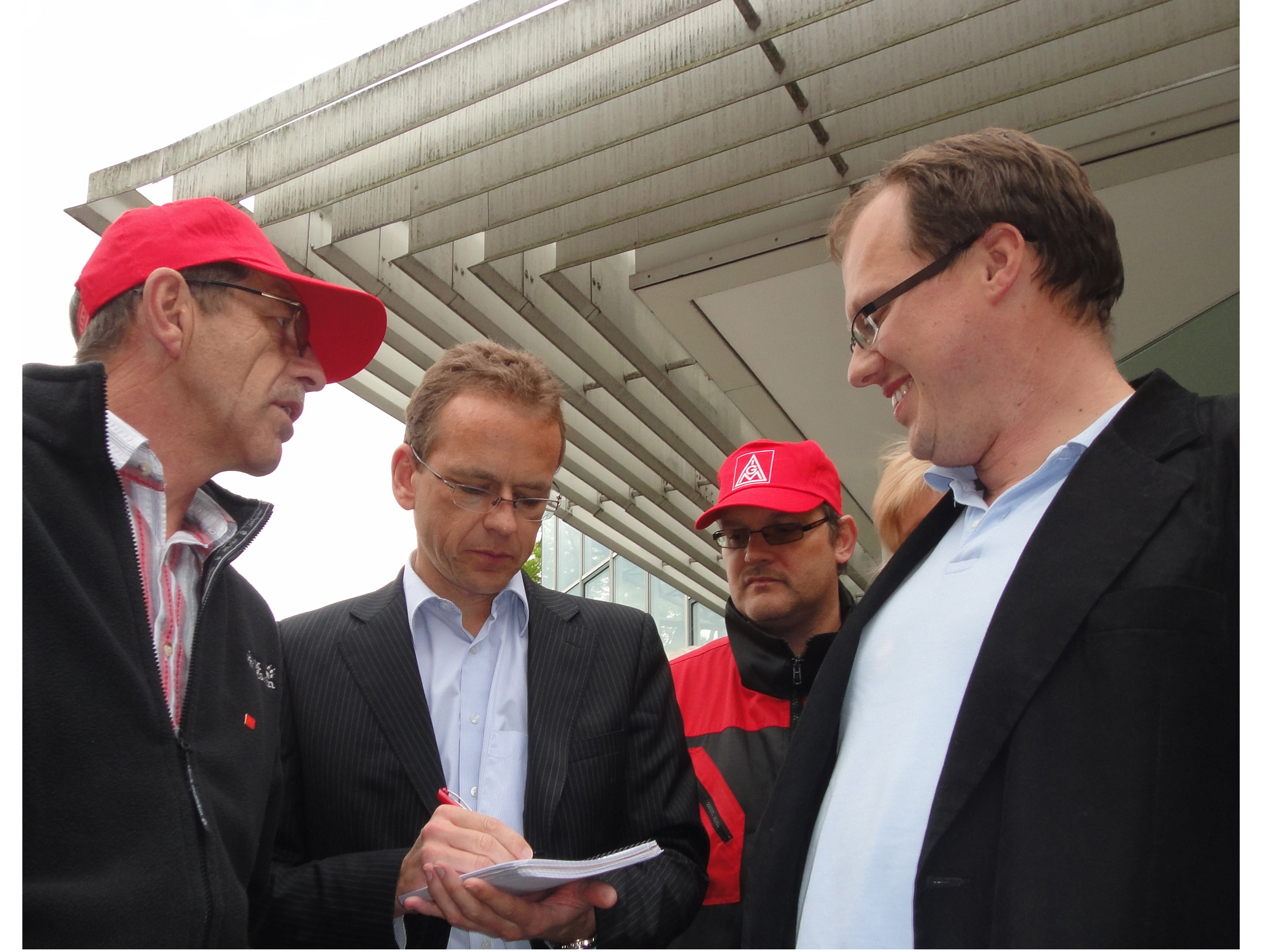 Jörg Hofmann dankt den IG Metall-Vertrauensleuten des Mercedes-Benz Werks Sindelfingen kurz vor Beginn der Tarifverhandlungen für ihre Unterstützung.