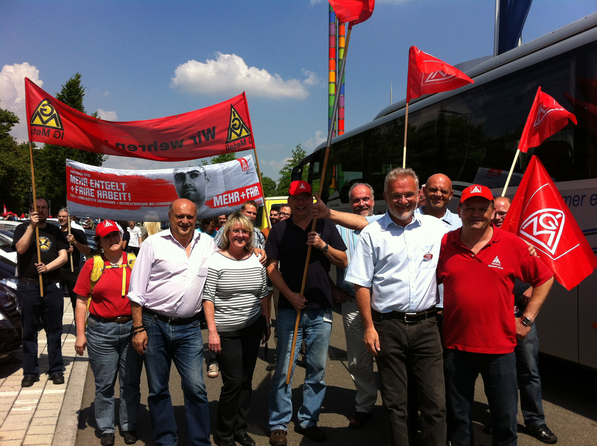 Die IG Metall fordert eine Erhöhung der Entgelte und Ausbildungsvergütungen um 6,5 Prozent für zwölf Monate, Regelungen zur Übernahme der Ausgebildeten und mehr Mitbestimmungsrechte des Betriebsrates beim Einsatz von Leiharbeitsbeschäftigten.