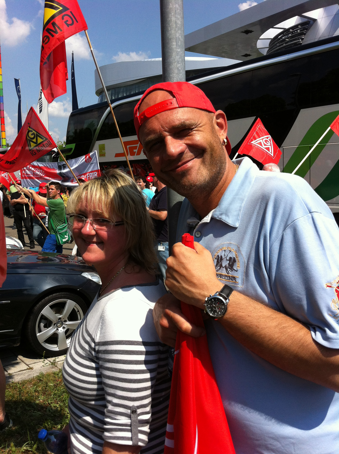 An der Kundgebung solidarisierten sich auch Kolleginnen und Kollegen aus der Daimler Zentrale und dem Mercedes-Benz Werk Untertürkheim