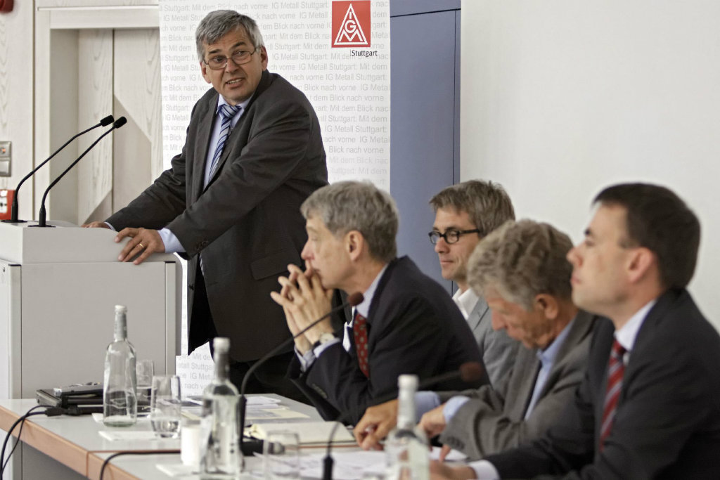 Arbeitsplätze und industrielle Wertschöpfung sind eng verbunden mit der Verkehrsinfrastruktur. Vom Umbau des Mobilitätssystems sind viele Mitglieder der IG Metall betroffen - zum einen als Mobilitätsnachfrager, zum anderen als Beschäftigte in der Verkehrsindustrie. Diesen Zusammenhang hat die IG Metall Region Stuttgart am heutigen Vormittag in den Fokus des Automobiltages 2012 gestellt und gemeinsam mit politischen Entscheidungsträgern den Dialog über eine zukunftsträchtige Mobilitäts- und Verkehrspolitik geführt.