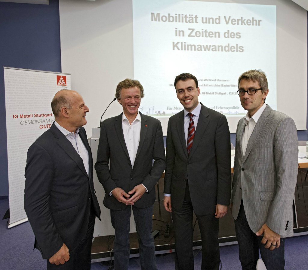 Der Wille gemeinsam, neue Wege zu gehen: Diese Haltung teilt auch Winfried Hermann, Minister für Verkehr und Infrastruktur: "Der notwendige Strukturwandel stellt für die Automobilbranche Baden-Württembergs eine große Herausforderung dar. Erfolgsversprechend sind die Produktion umweltfreundlicher, hocheffizienter Fahrzeuge sowie innovative Dienstleistungs- und ressourcenschonende Nutzungskonzepte. Unser Ziel ist es, die politischen Weichen so zu stellen, dass wir gemeinsam mit den Unternehmen diese Herausforderung bewältigen können", erläuterte Hermann, seine Vorstellung von nachhaltiger Mobilität und zukunftsfähigen Arbeitsplätzen vor den etwa 150 anwesenden Betriebsräten auf dem Automobiltag der IG Metall Region Stuttgart.