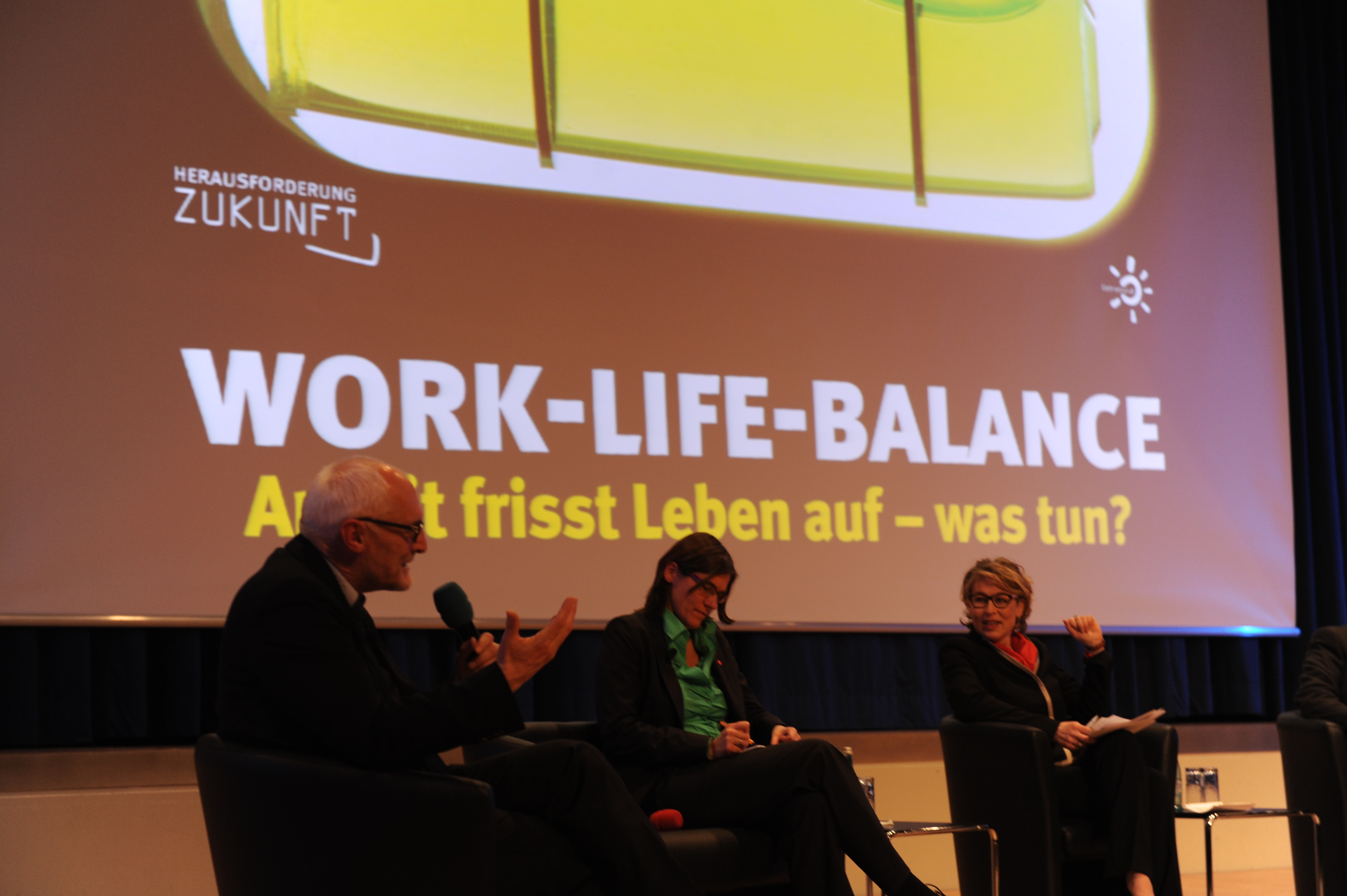 Die Beschäftigten hatten dabei Gelegenheit gemeinsam mit internen und externen Experten aus Wissenschaft, Politik und Verbänden das Thema Work-Life-Balance zu debattieren. Ausgangspunkt der Debatte war das Forschungsprojekt "Ausgeglichen! Vereinbarkeit von Arbeits- und Privatleben", das von der Abteilung Arbeits- und Organisationspsychologie der Universität Heidelberg im Auftrag und in Kooperation mit der Daimler AG durchgeführt wurde.