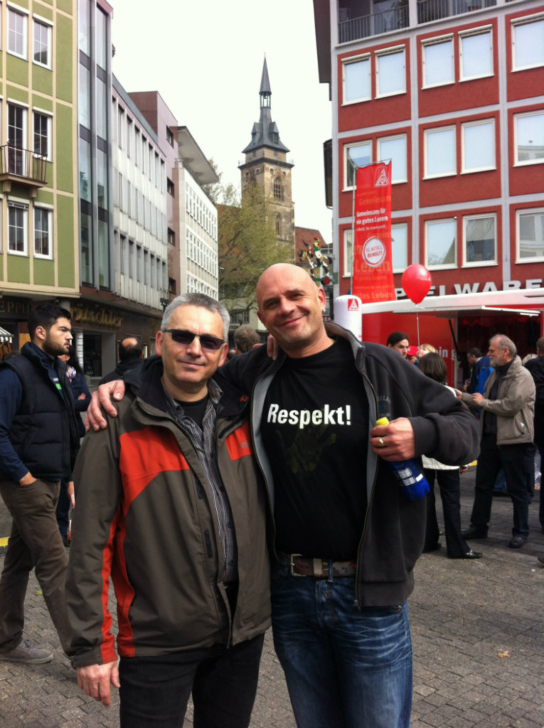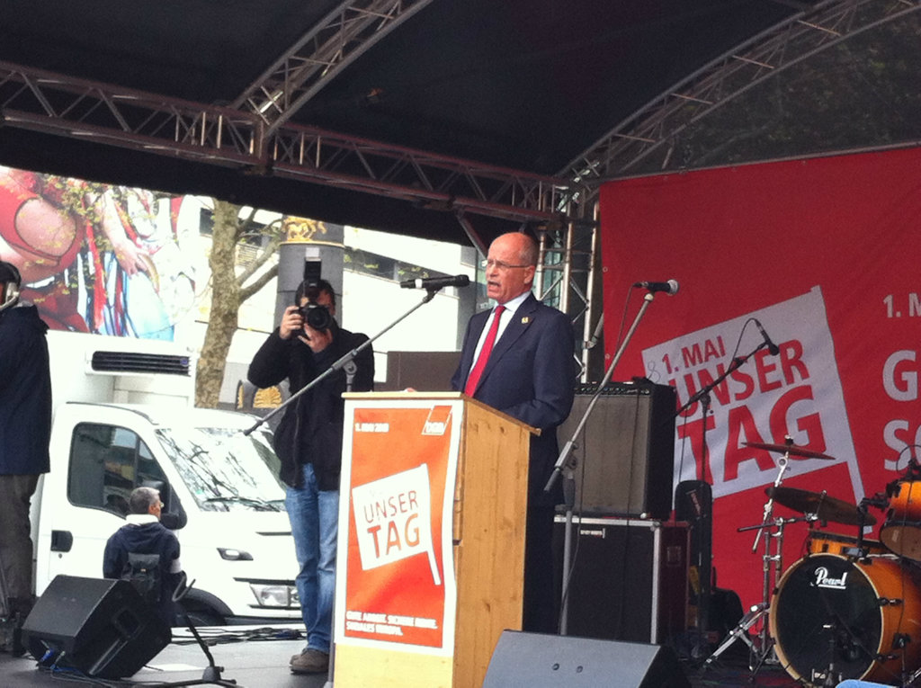 In Stuttgart sprach der Erste Vorsitzende der IG Metall, Berthold Huber