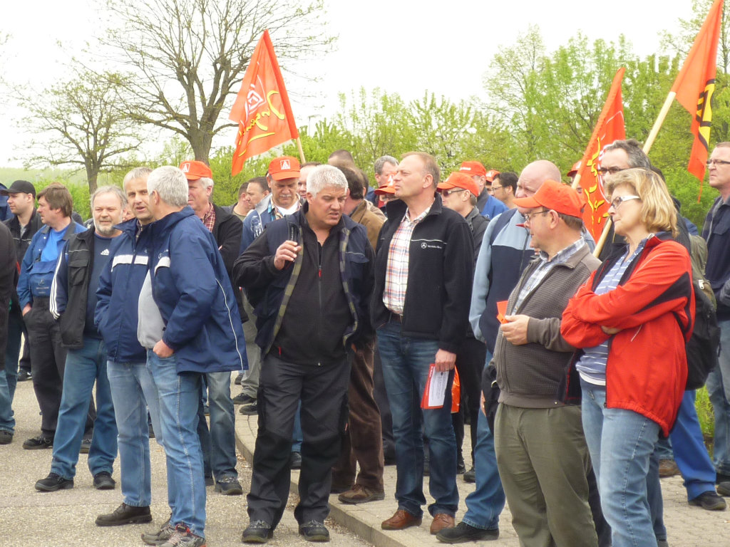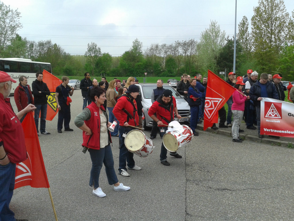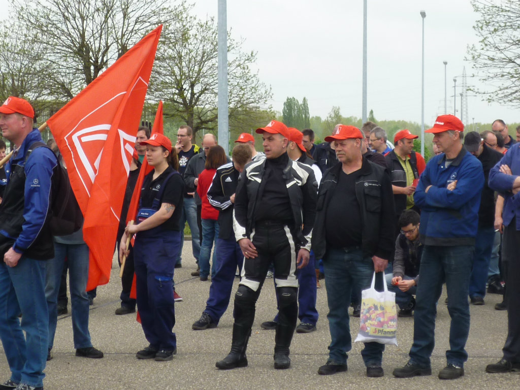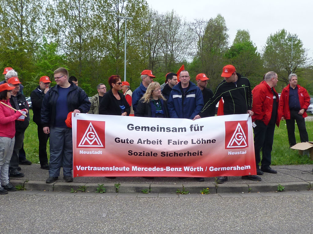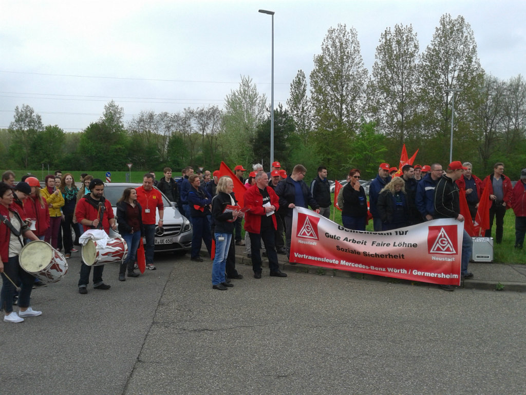 Die Streikwelle bei Mercedes-Benz setzt sich fort. Am 3. Mai traten rund 500 Beschäftigte im Global Logistics Center Germersheim in den Warnstreik. Die anwesenden Gewerkschafts- und betrieblichen Arbeitnehmervertreter kritisierten das Angebot der Arbeitgeberseite scharf und forderten die Beschäftigten auf, weiter Druck auf die Arbeitgeber auszuüben.