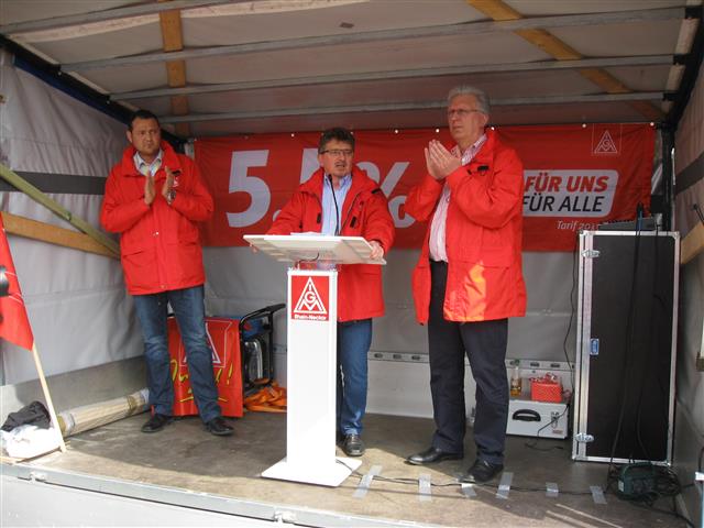 Die Kolleginnen und Kollegen der Mittelschicht waren aufgerufen, sich um 18:30 Uhr am Tor 2 an einem Warnstreik mit Kundgebung zu beteiligen.