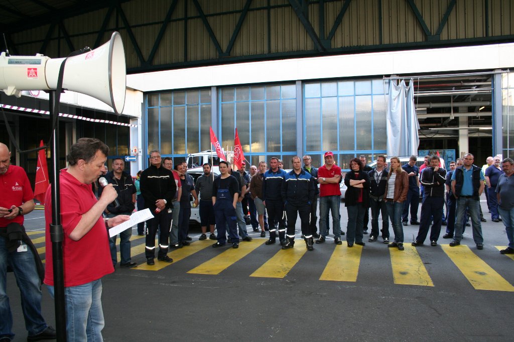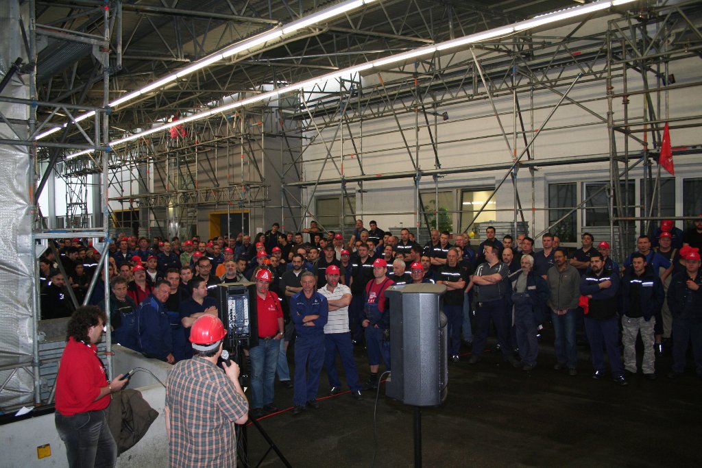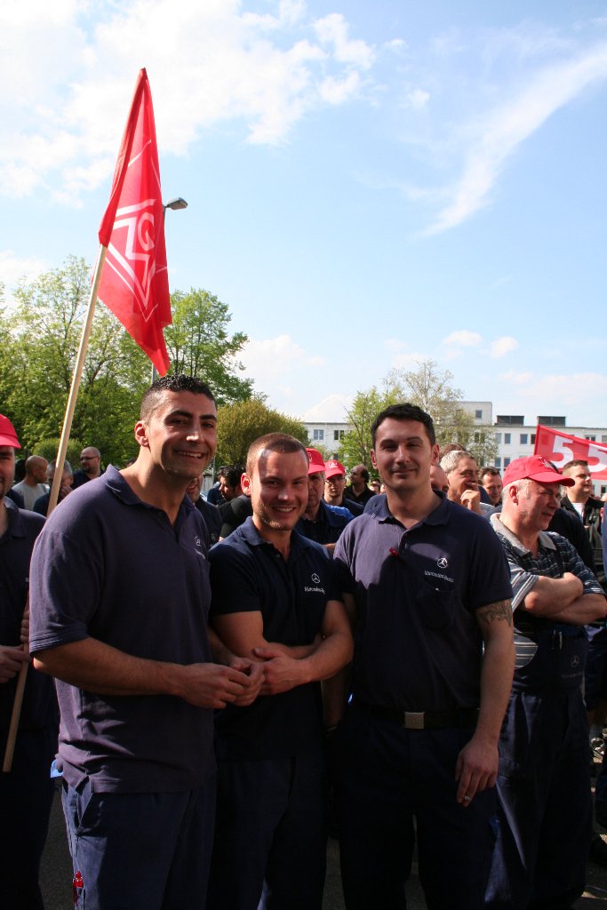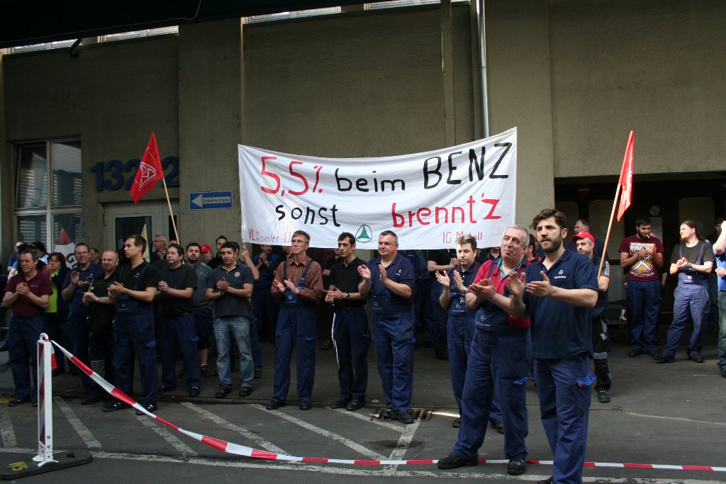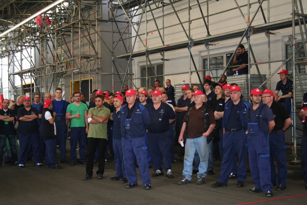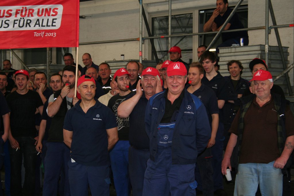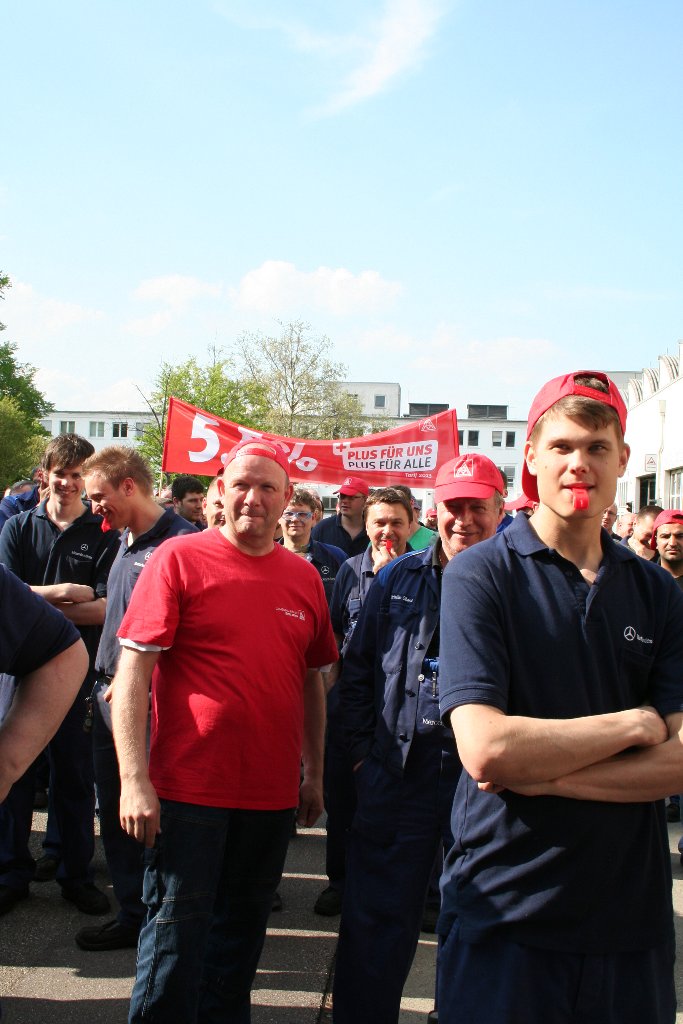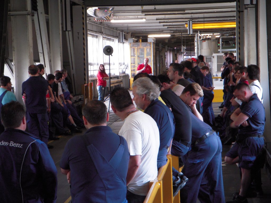Im Werk Untertürkheim fanden in den Werkteilen Untertürkheim, Bad Cannstatt, Hedelfingen und Mettingen bis Mittwochabend, 8. Mai 32 Warnstreiks statt. An den Warnstreiks haben sich mehrere Tausend Kolleginnen und Kollegen beteiligt.