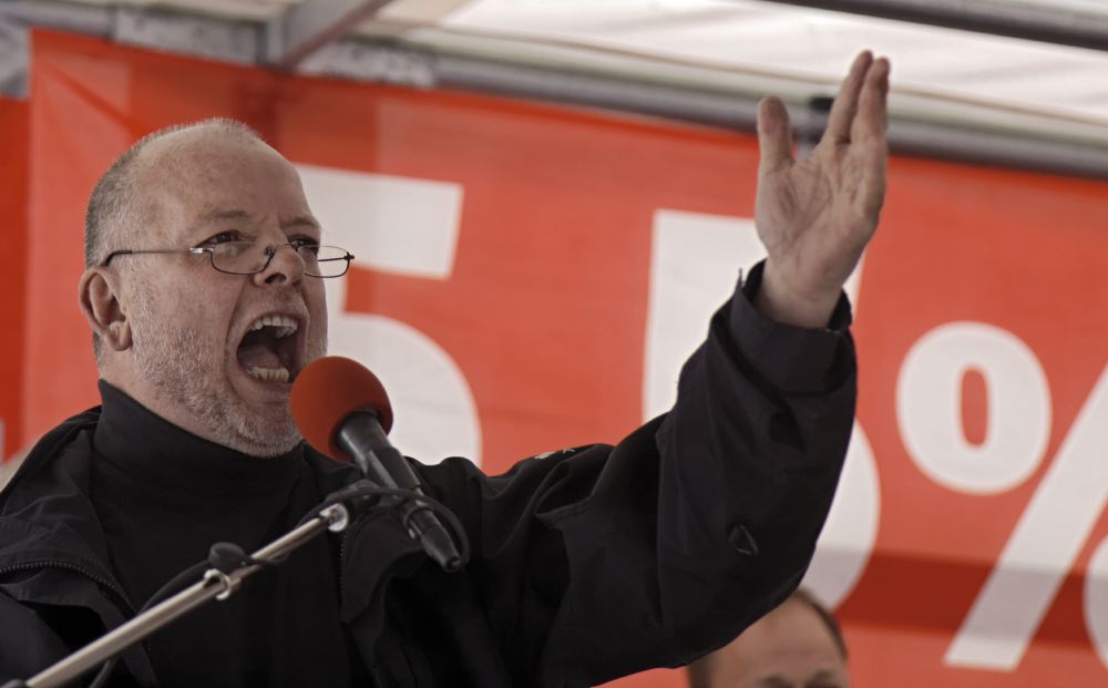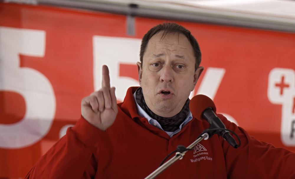 Jörg Spies, Betriebsratsvorsitzender der Daimler Zentrale, zeigte in seiner Rede auf, wie wichtig höhere Einkommen für das Leben in Stuttgart sind, da auch die Preissteigerungsraten entsprechend hoch sind. Er prangerte das Auseinanderdriften der Entgelte der Beschäftigten zu den Einkommen der Vorstände an.