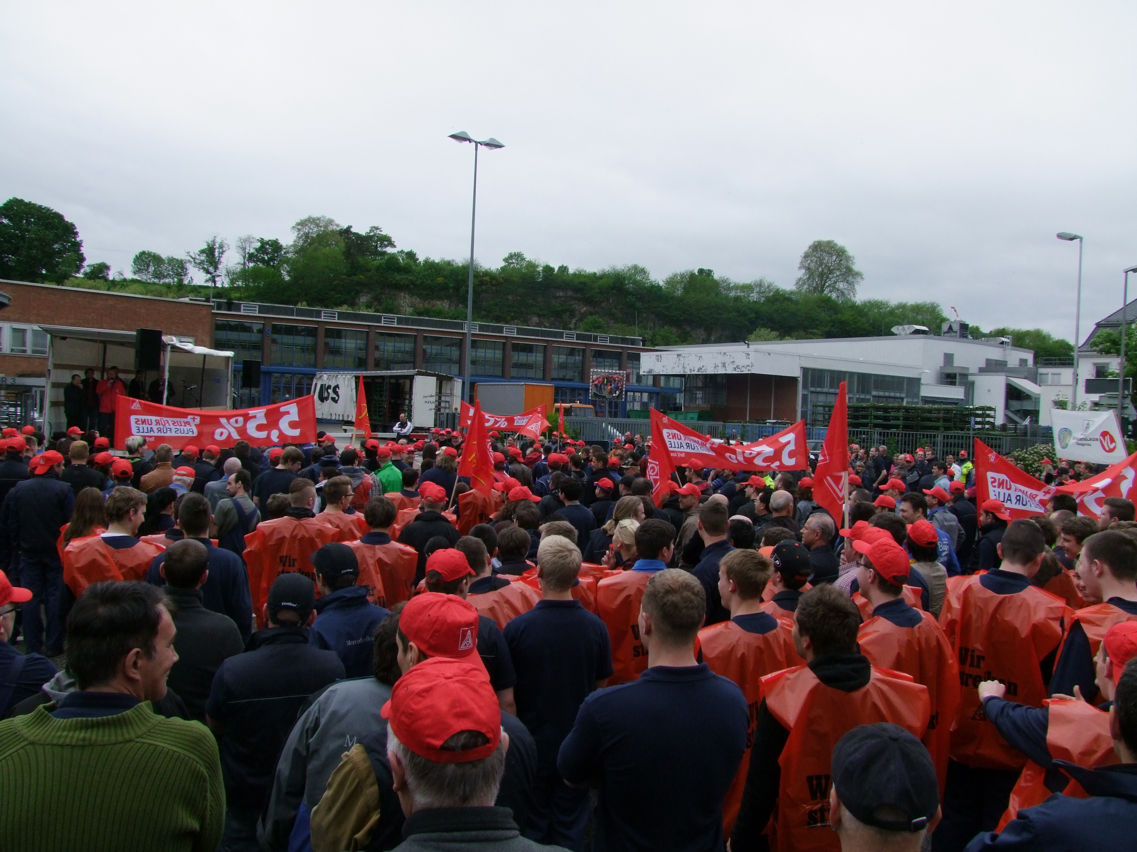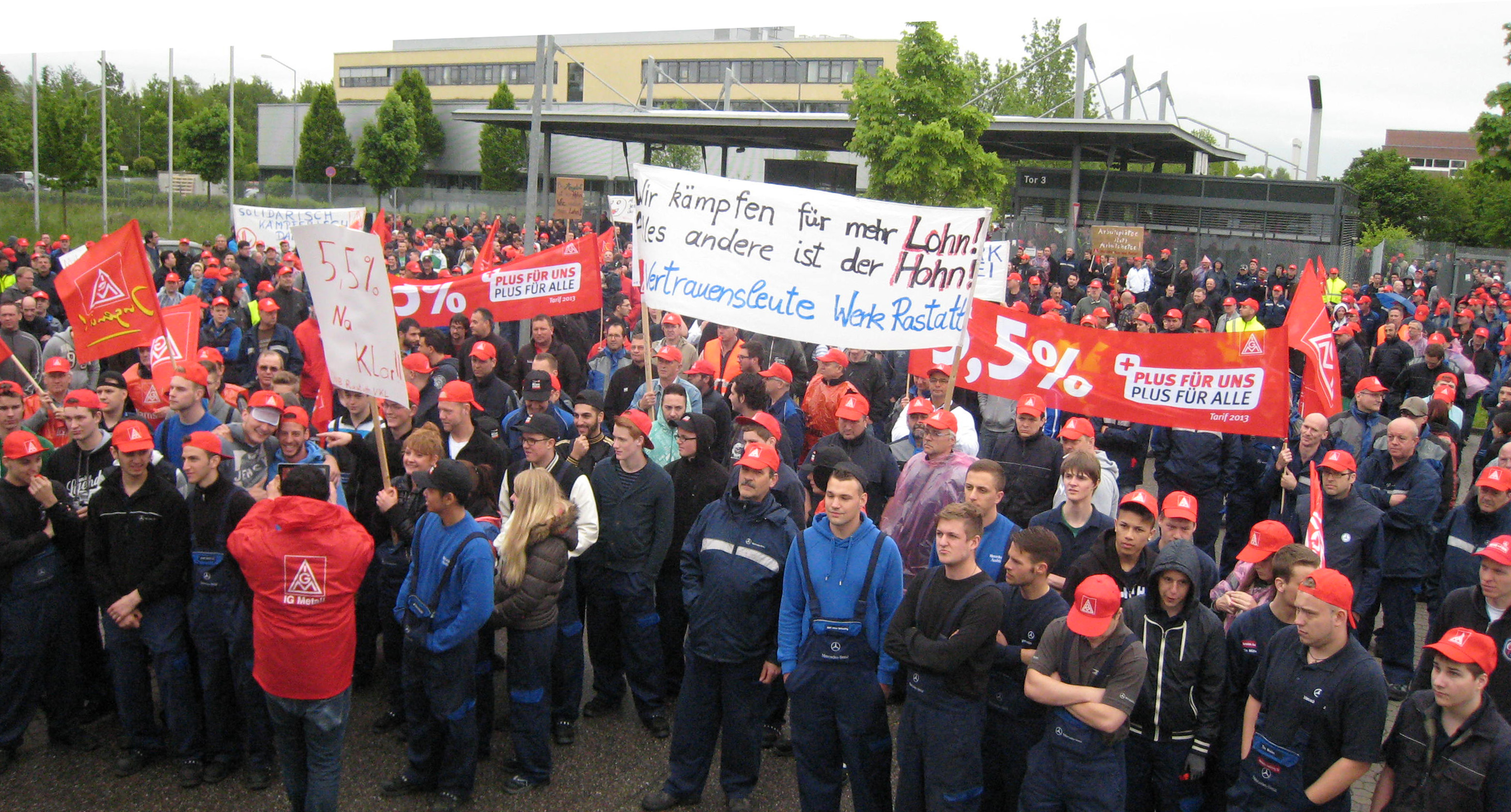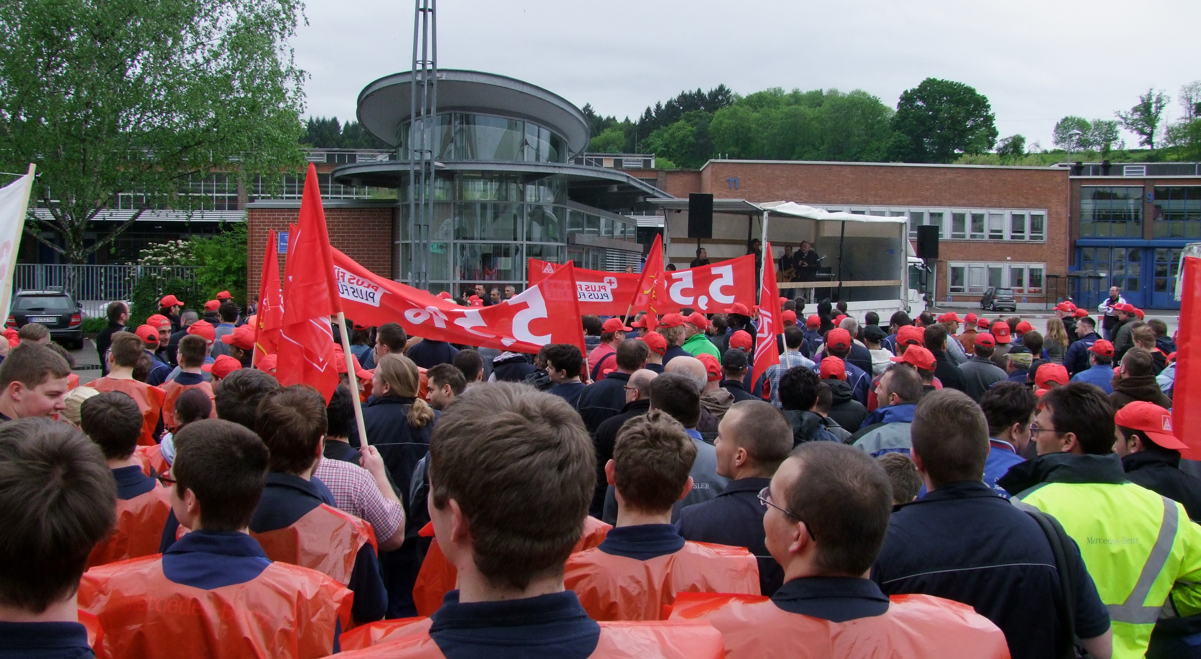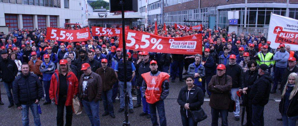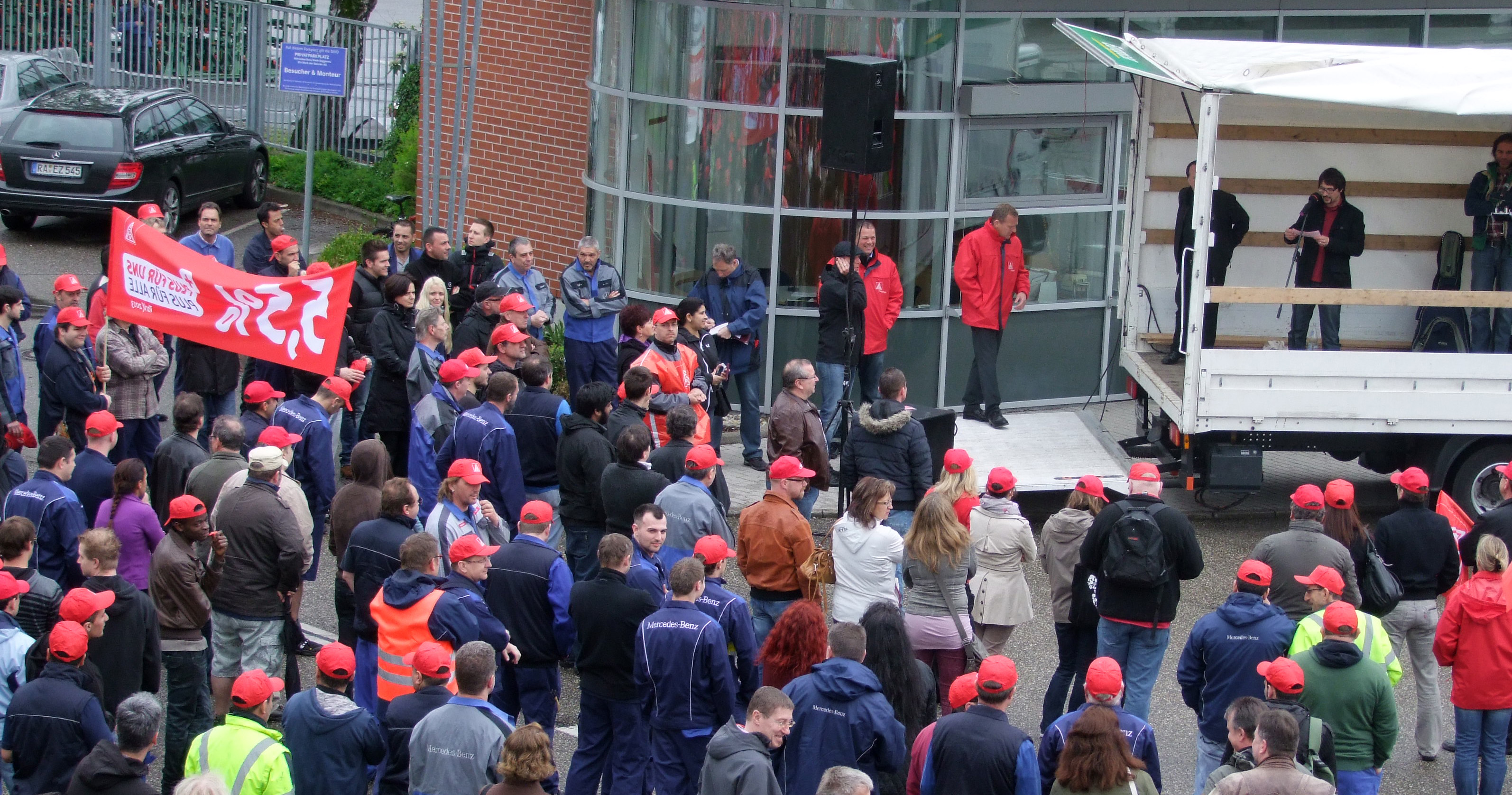 Nachdem letzte Woche schon zum Frühschluss aufgerufen wurde, gingen die Beschäftigten des Mercedes-Benz Werkes Gaggenau mit seinen Werkteilen am 13. Mai vor die Werkstore und setzten weitere Zeichen.