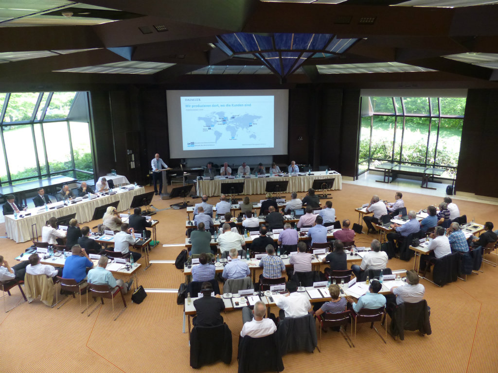 Insgesamt waren auf der gemeinsamen Sitzung beider Gremien im Bildungshaus Lämmerbuckel Repräsentanten der Belegschaften aus 19 Ländern anwesend - eine Rekordbeteiligung bei internationalen Sitzungen der Arbeitnehmervertretungen bei Daimler.