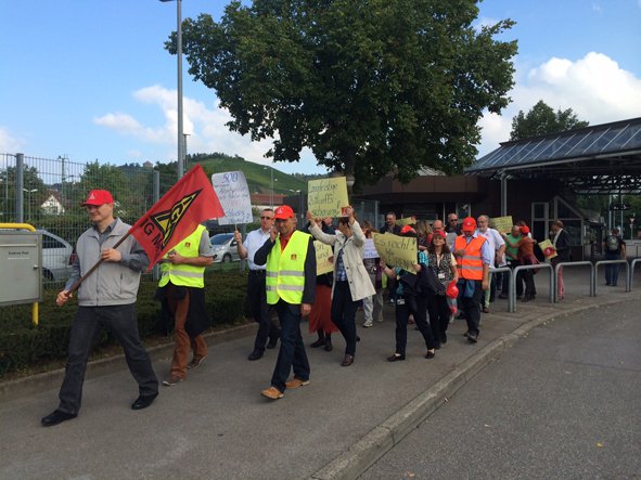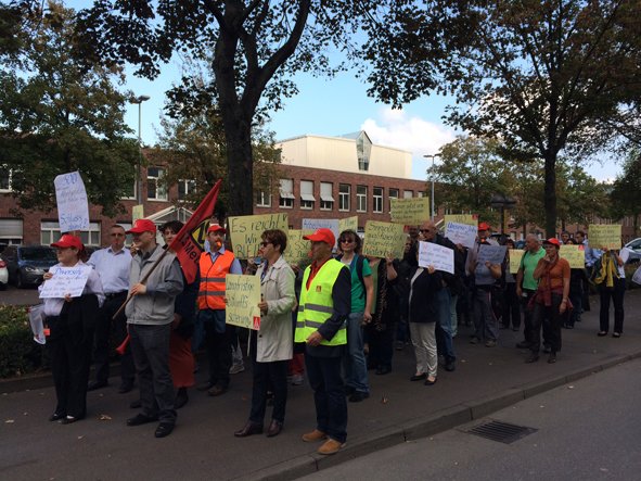 Ihre Forderungen haben die Betroffenen auf den mitgebrachten Schildern deutlich kundgetan: Keine weiteren Verlagerungen, langfristige Zukunftssicherung, qualifizierte gleichwertige Arbeitsplätze - keine Gehaltseinbußen,