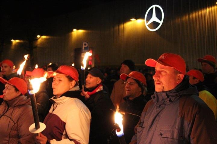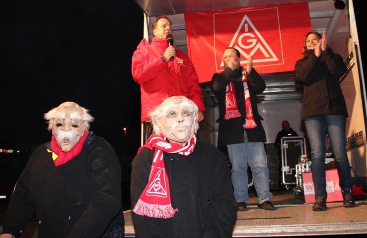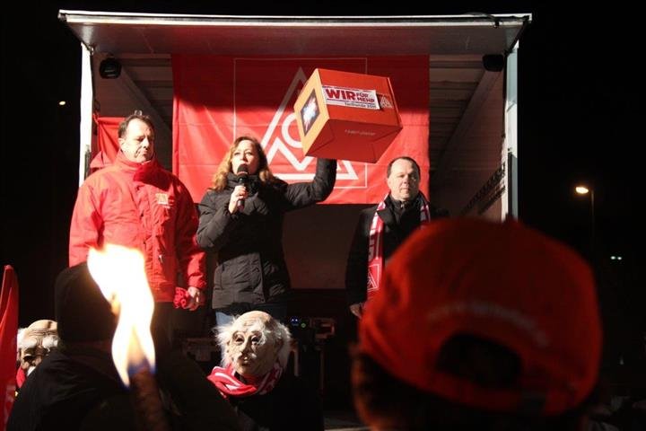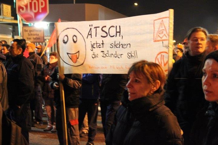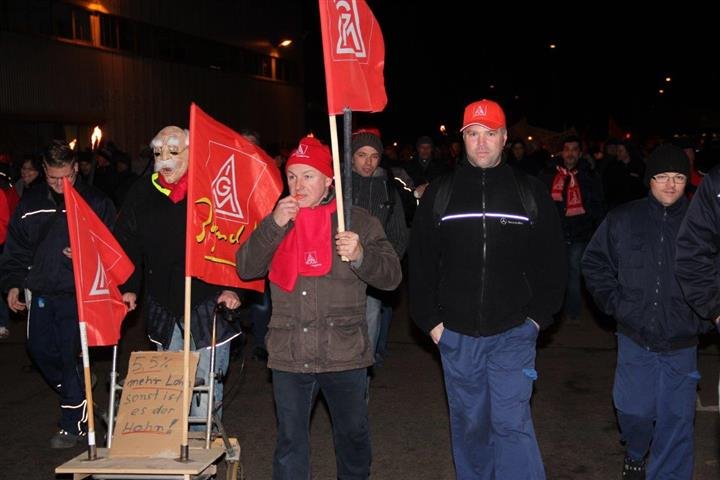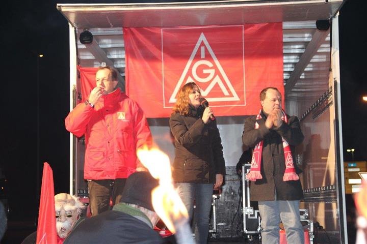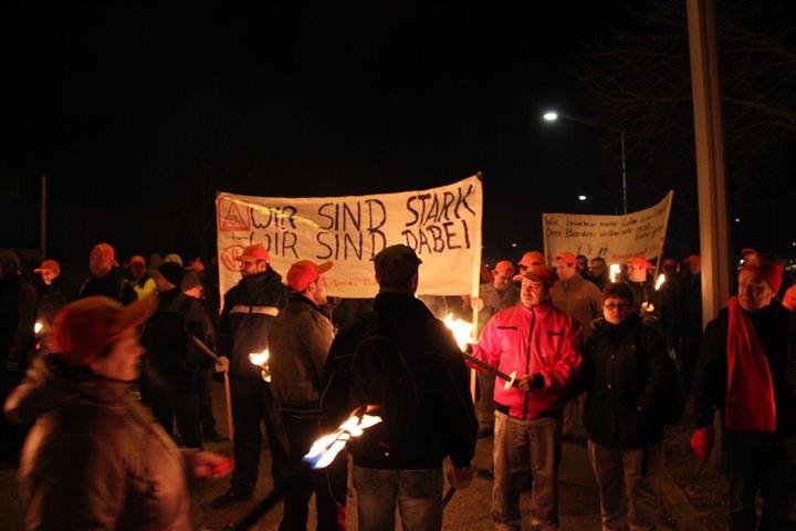 1.500 Beschäftigte der Spätschicht aus PKW Werk und Getriebewerk beim Daimler in Rastatt setzten die Arbeitgeber mit ihrem Warnstreik ab 20:30 Uhr weiter unter verstärkten Druck.