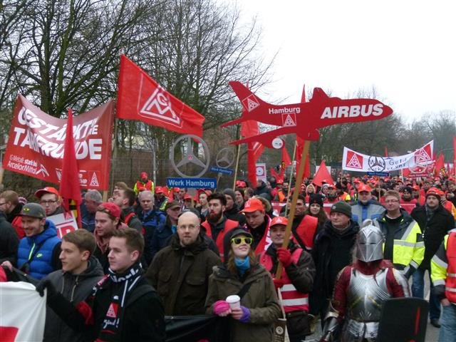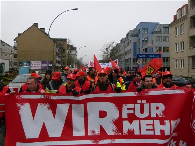 Am Freitag folgten 16.500 Beschäftigte aus 80 Betrieben dem Aufruf der Gewerkschaft zum Warnstreik unter anderem auch ca. 1.600 Beschäftigte von Daimler Werk Hamburg. Das Werk Hamburg stand still, in keiner der drei Schichten fand Produktion statt.