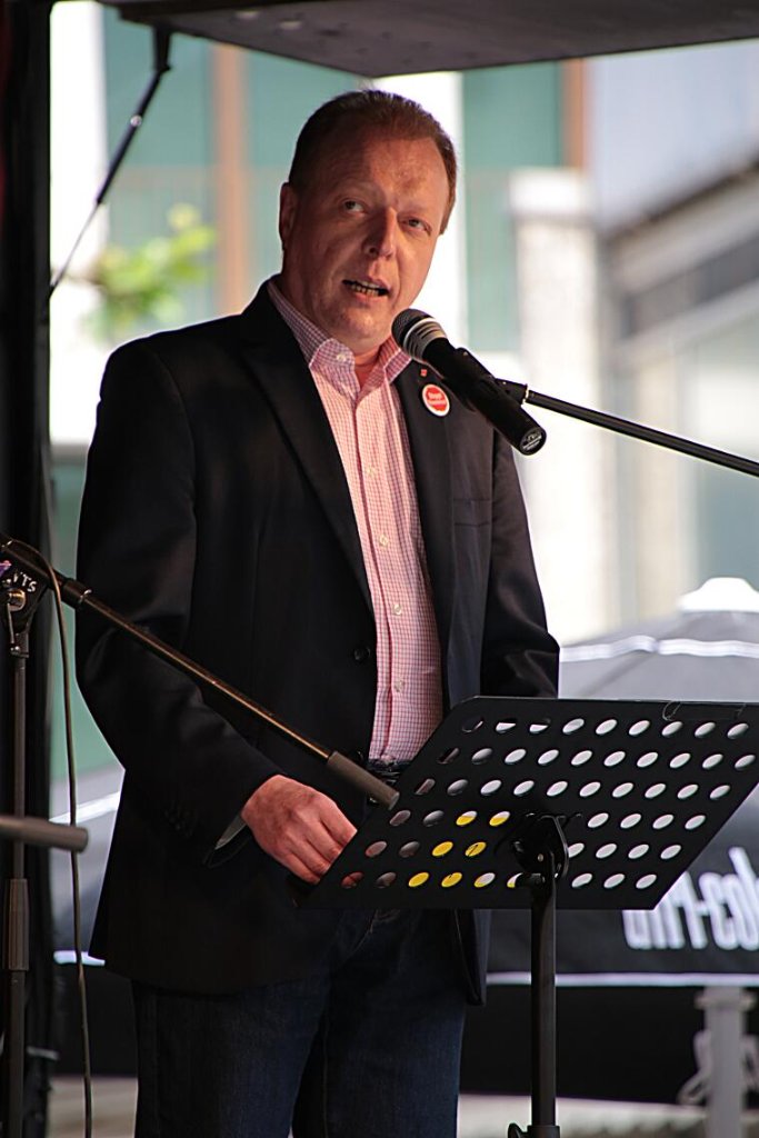 Der DGB-Landesvorsitzende Nikolaus Landgraf ging auf die gesellschaftlichen Rahmenbedingungen ein, die Pegida einen Nährboden bieten. "Unsere Gesellschaft muss die Ängste vor sozialem Abstieg, vor Arbeitslosigkeit und