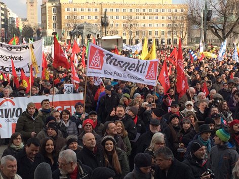 "Unser Land soll offen bleiben für Menschen, die hier friedlich, respektvoll und in gutem Einvernehmen mit ihren Nachbarn leben wollen - unabhängig von ihrer Herkunft, unabhängig davon, welcher Religion sie angehören und unabhängig von ihrem Geschlecht. Wir wollen keine Hassparolen hören und lesen. Wir wollen keine Heime brennen sehen", sagte Gabriele Frenzer-Wolf, die stellvertretende DGB-Landesvorsitzende.