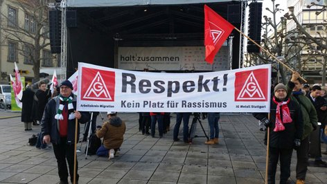Zu der Kundgebung "halt zusammen - Baden-Württemberg gegen Rassismus und Gewalt" hatte ein landesweites Bündnis aus Gewerkschaften, Arbeitgebern, den großen Kirchen im Land, dem Landesfrauenrat, Jugendverbänden, Wohlfahrts- und Sozialverbänden, dem Sport, allen im Landtag und/oder im Bundestag vertretenen Parteien, politischen Stiftungen, der Islamischen Glaubensgemeinschaft Baden-Württemberg, den Israelitischen Religionsgemeinschaften, dem Flüchtlingsrat und vielen weiteren Organisationen aus der Zivilgesellschaft aufgerufen. Insgesamt haben sich 81 Organisationen dem Bündnis angeschlossen. Hintergrund der Großkundgebung ist die zunehmende Gewalt gegenüber Geflüchteten und das Erstarken rechtspopulistischer Strömungen.