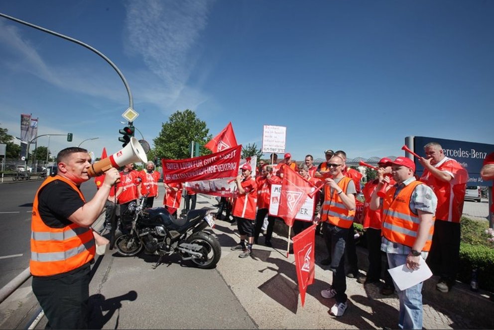 Unterstützt wurden sie erneut von Betriebsräten und Vertrauensleute von Mercedes. Michael Rahmel, dortiger stellvertretender Betriebsratsvorsitzender und Mitglied des IG Metall Ortsvorstandes, sowie Bojan Westphal,