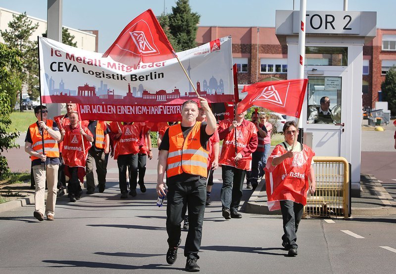 - "Kolleginnen und Kollegen von CEVA sind wir, Schulter an Schulter streiken wir."
