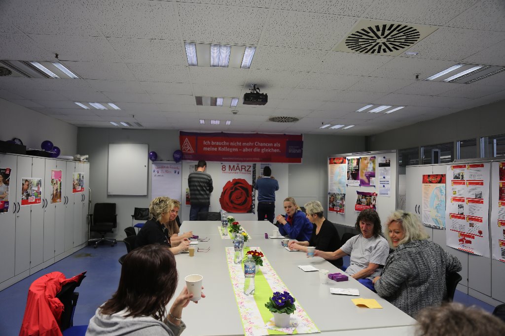 "Ich finde es eine gute Gelegenheit, auch für Frauen im Verwaltungsbereich, um miteinander ins Gespräch zu kommen und Themen und Probleme von uns Frauen im Betrieb zu diskutieren. Außerdem können wir Frauen den Tag nutzen, um uns gemeinsam stark zu machen für Verbesserungen und um Ansprüche und Wünsche zu äußern. Nichts kommt von alleine. Wenn wir uns nicht selbst für unsere Interessen einsetzen, tut es gewiss keiner!" so Sotiria Koutalakidou die ein Frauentagcafé mitbetreute.