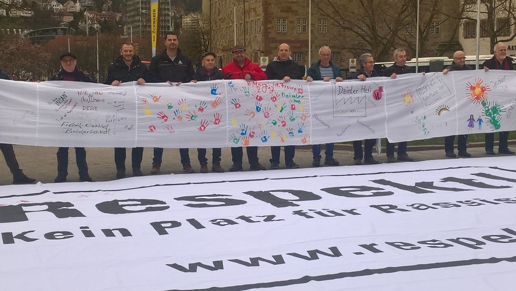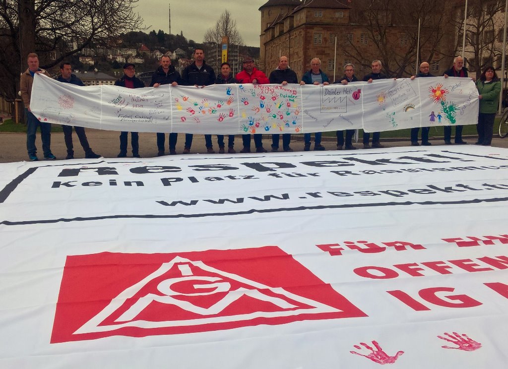 Die IG Metall Stuttgart hat dazu am 21. März, dem Internationalen Tag gegen Rassismus, auf dem Stuttgarter Schlossplatz einen "Flagmob" veranstaltet.