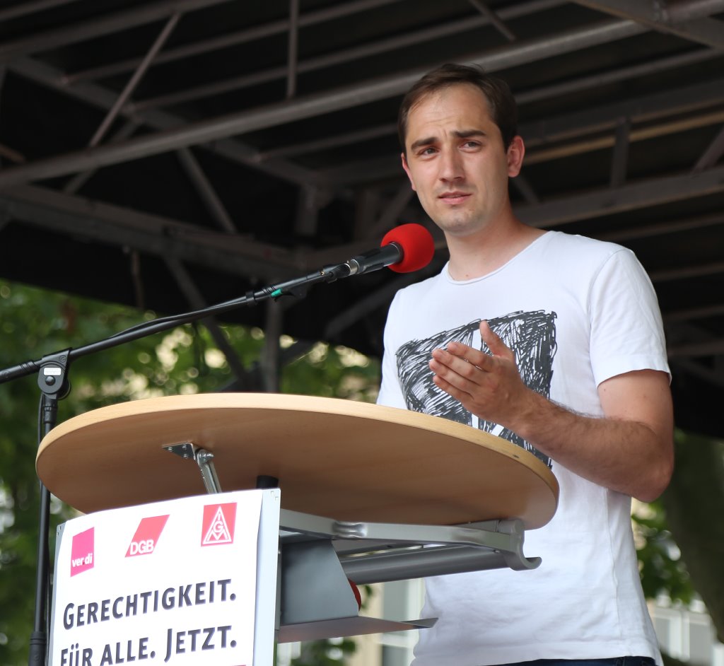 Für die IG Metall Jugend sprach Max Zipf, Jugendsekretär der Verwaltungsstelle Esslingen, der in seiner Ansprache betonte, wie wichtig politische Rahmenbedingungen sind, da nicht alles in einem Tarifvertrag geregelt werden kann.