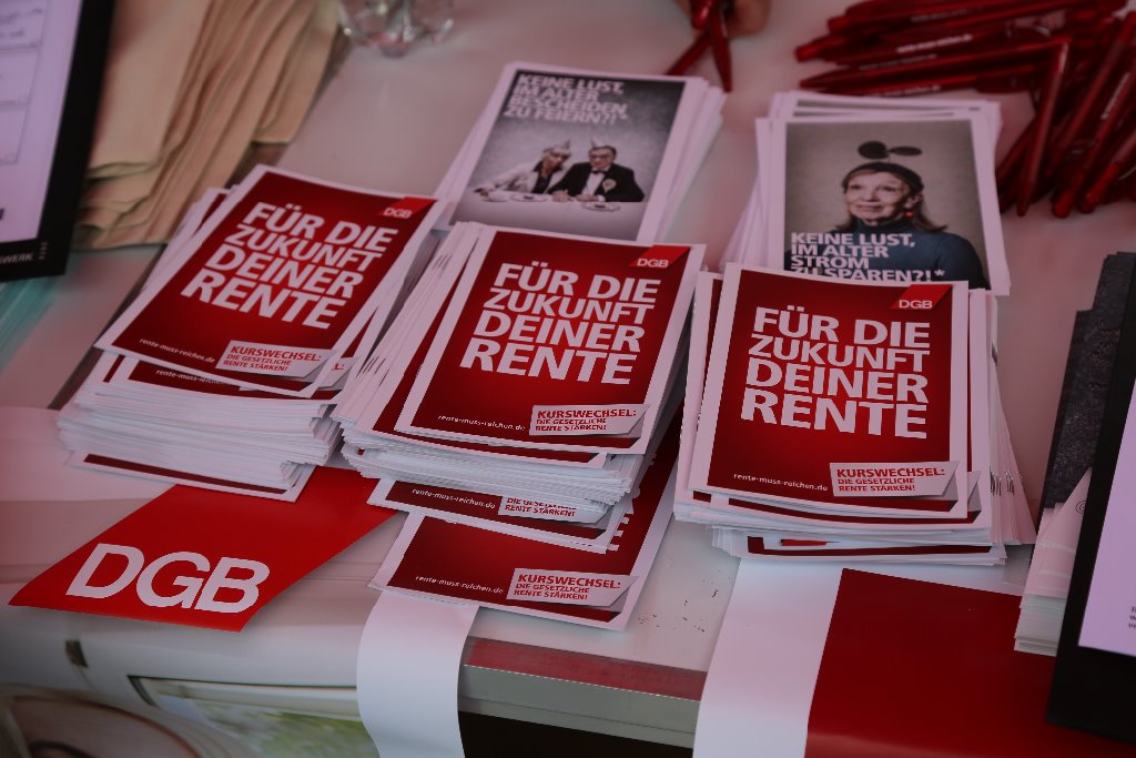 Die Gewerkschaften wollten drei Monate vor der Bundestagwahl ein Zeichen setzen und ihre Forderungen präsentieren. Diese sind eine gute Arbeit mit fairen Löhnen, eine starke Sozialversicherung und die Stärkung der gesetzlichen Rente. Dieser Appell an die Politik wurde von den Demonstranten lautstark und mit Trillerpfeifen bekräftigt. Der Aufruf rote Karten hochzuheben, wenn man von langen Studienzeiten, Teilzeit, Elternzeit etc. betroffen ist - alles fehlende Punkte im Rentenwert -, verwandelte den Schlossplatz in ein rotes Kartenmeer.