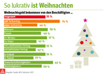 Weihnachtsgeld bekommen 55 Prozent der Beschäftigten. Entscheidend ist vor allem, ob ein Tarifvertrag angewendet wird. Von den Beschäftigten, die in einem Betrieb mit Tarifvertrag arbeiten, können sich 74 Prozent über eine Sonderzahlung freuen.