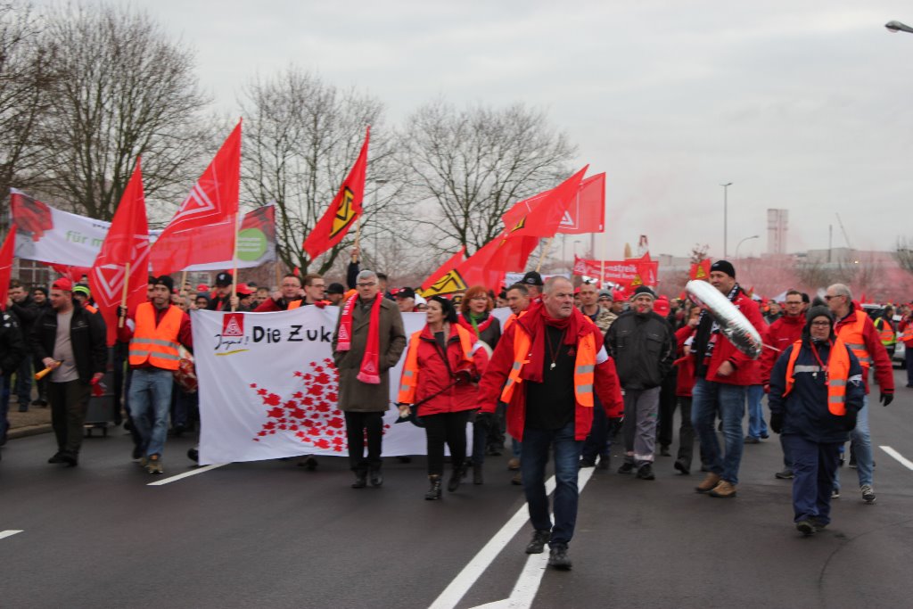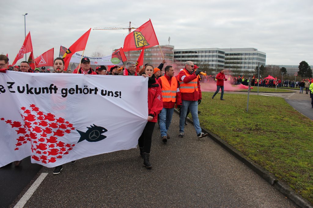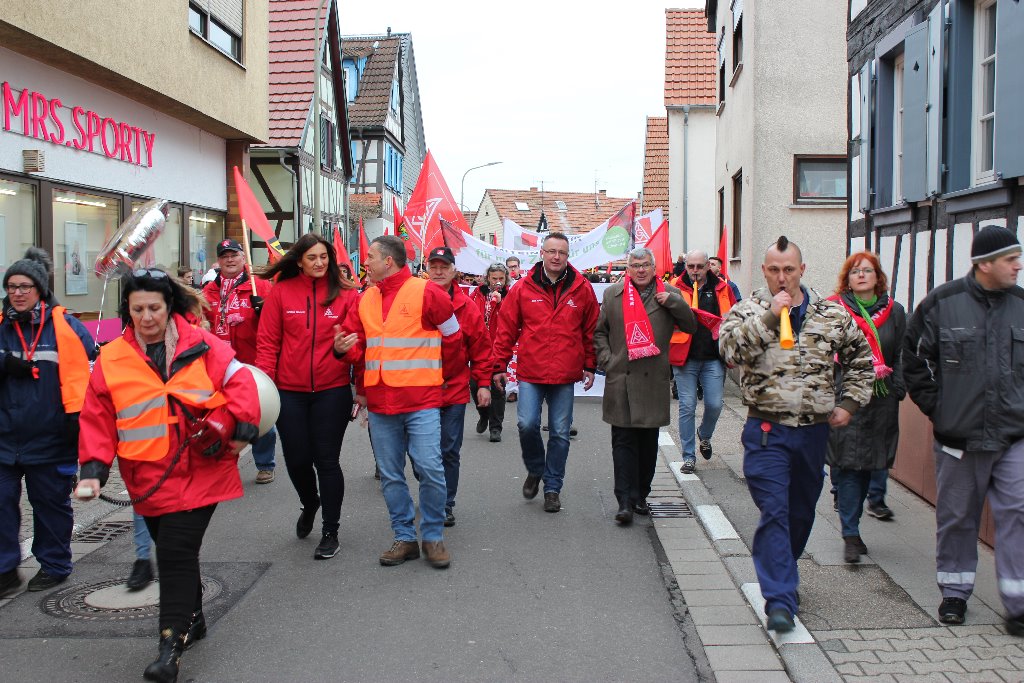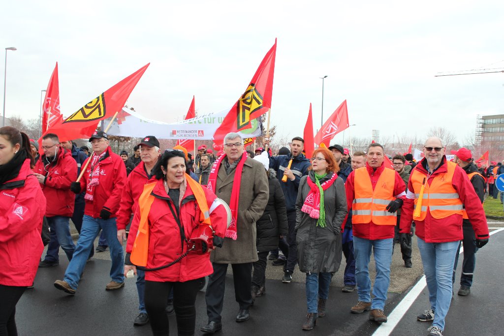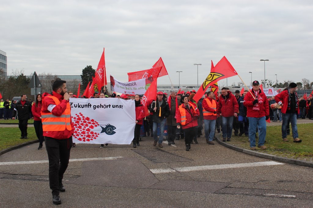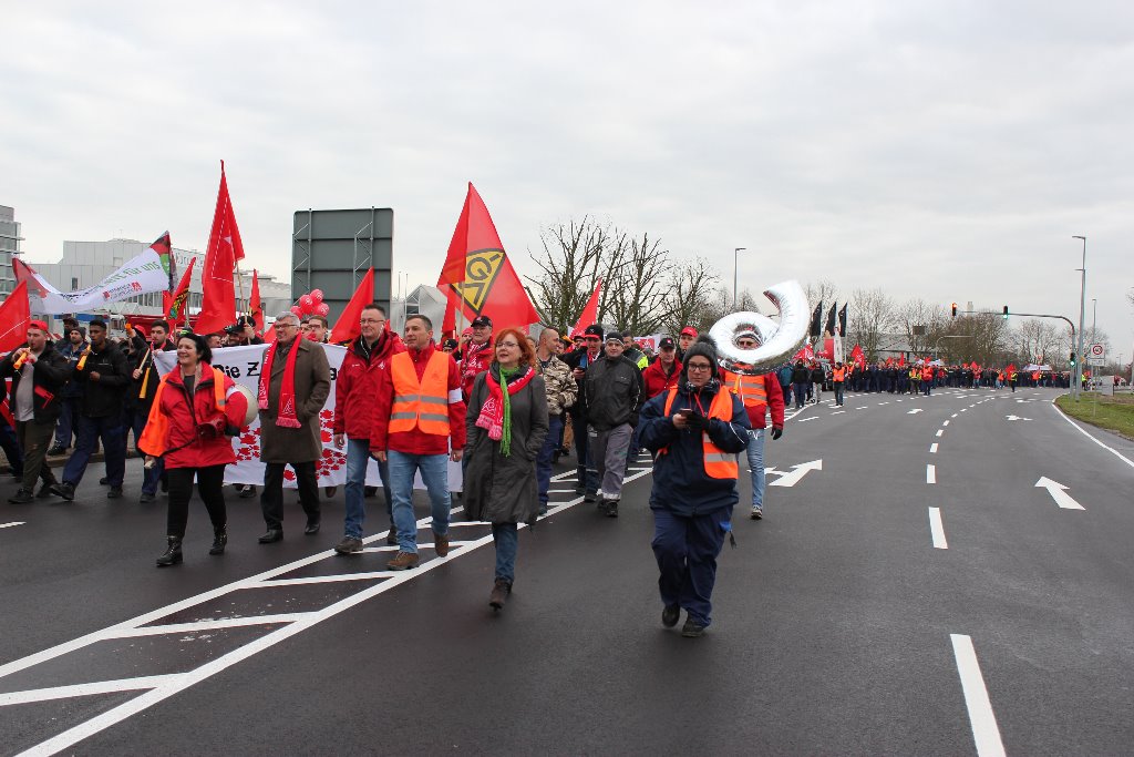 Über 3.500 Beschäftigte von Daimler und aus mehreren Betrieben der Region solidarisierten sich im Rahmen eines Warnstreiks und folgten am 23. Januar dem Aufruf zur Arbeitsniederlegung. Die große Beteiligung überraschte selbst die IG Metall Neustadt, die zum Demonstrationszug zur Festhalle am Rathausplatz aufgerufen hatte. So etwas hat die Stadt Wörth/Rhein schon lange nicht mehr gesehen.