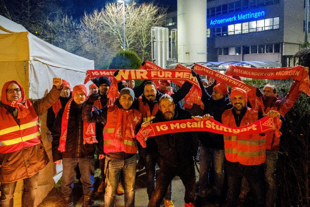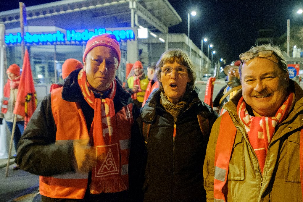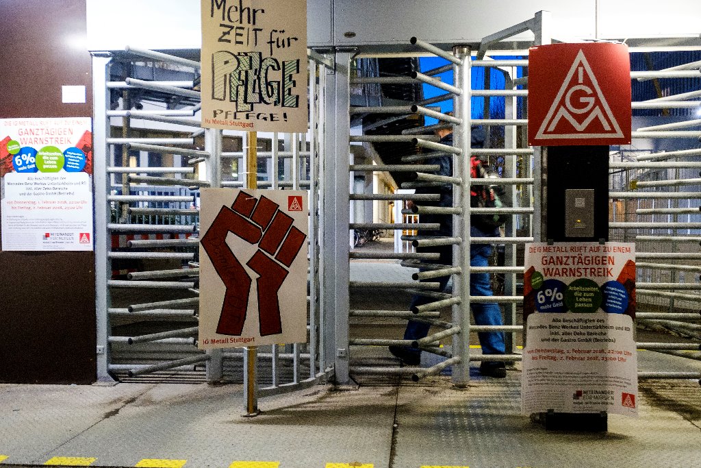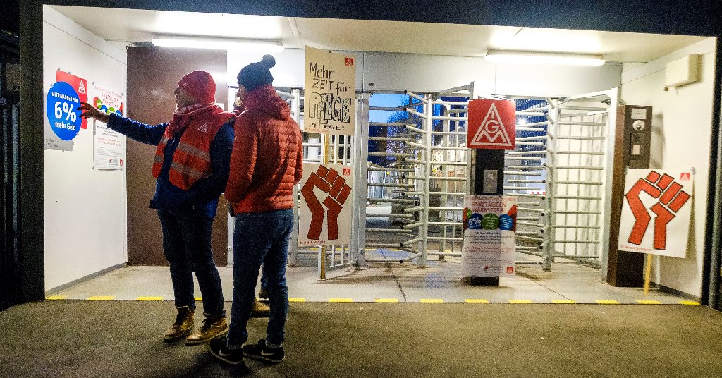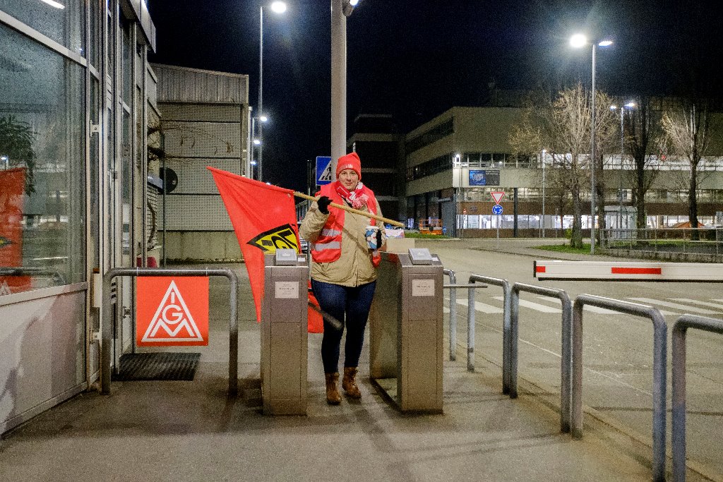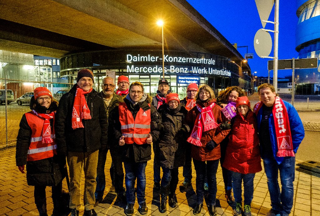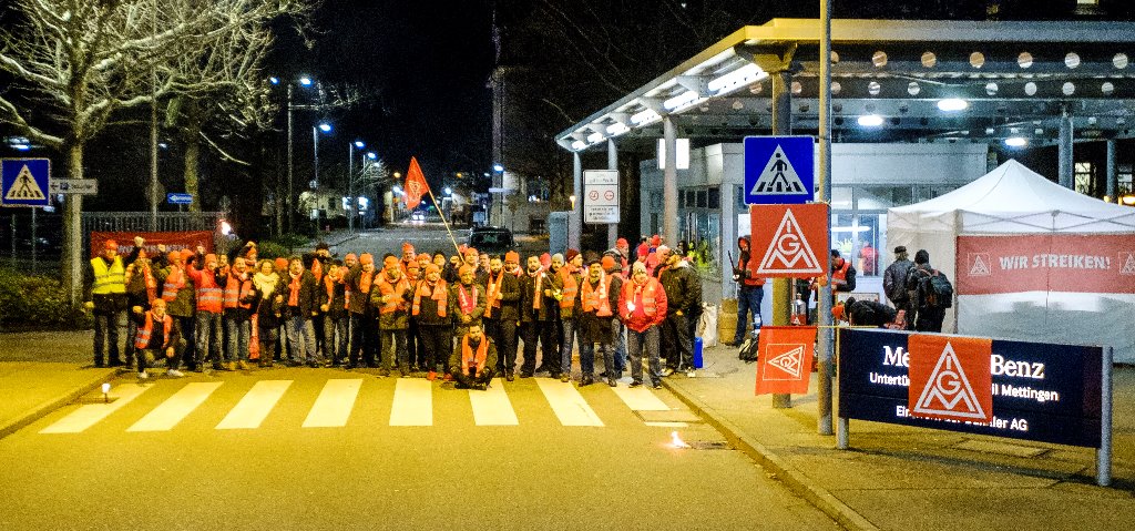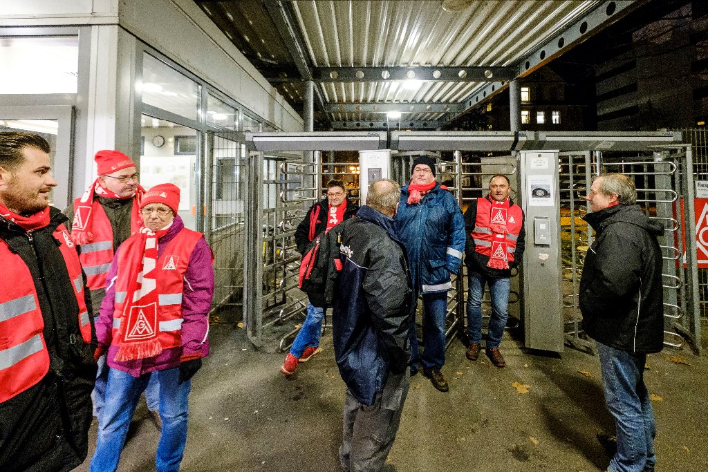 Im Laufe des Tages beteiligten sich über 14.000 Beschäftigte aus dem Mercedes-Benz Werk Untertürkheim an den ganztägigen Warnstreiks. Die Produktion kam vollständig zum Erliegen. In den frühen Morgenstunden trafen sich die IG Metall Vertrauensleute an den Torposten im Mercedes-Benz Werk Untertürkheim zu mehreren Warnstreikversammlungen.