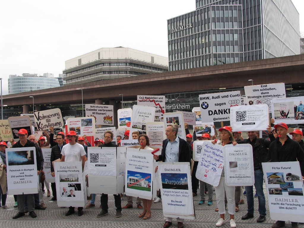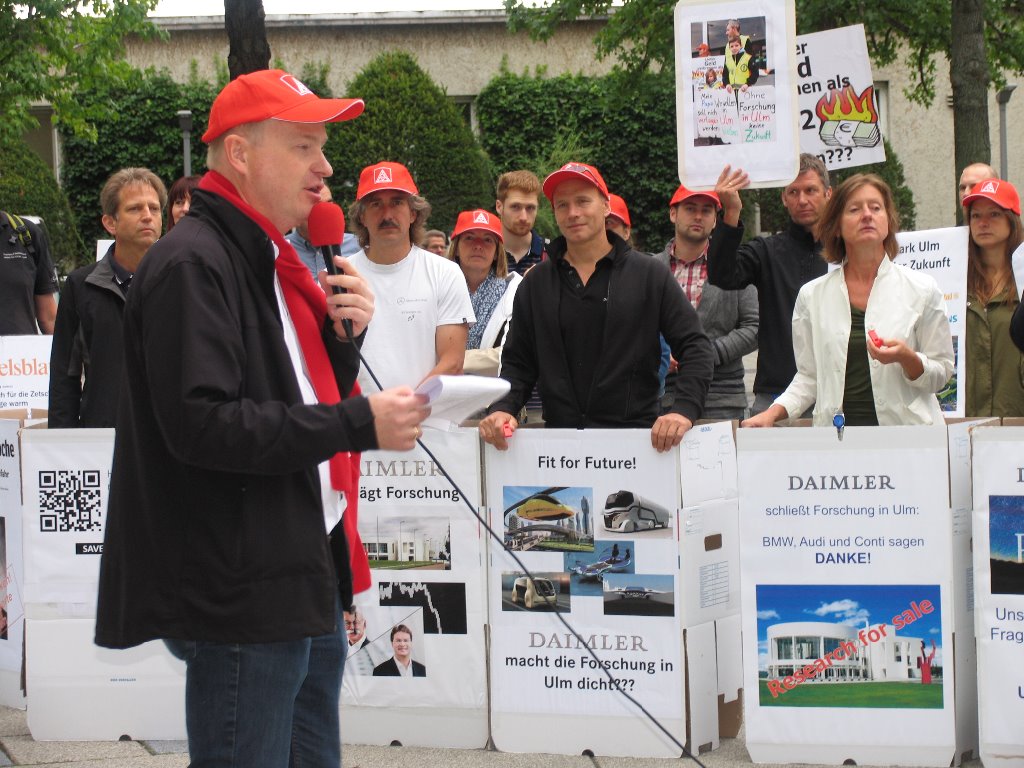 Der Betriebsrat der Forschung Ulm und die IG Metall Ulm halten die Entscheidung des Unternehmens für schlecht durchdacht. Aufgelöst werden soll ein - auch aus Sicht von Daimler erklärtermaßen - effizienter Standort. Nach wie vor sind sie überzeugt, dass eine zukunftsgerichtete Entscheidung für den Entwicklungsstandort Ulm, Daimler mehr nutzen würde als die Auflösung. Auch, weil die Stadt Ulm darauf ausgerichtet ist, den Science Park weiter zu entwickeln.