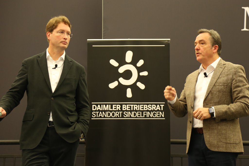Die letzte Betriebsversammlung des Jahres war geprägt von vielen wichtigen Themen, die die Beschäftigten, Betriebsrat und Unternehmen gleichermaßen bewegen: angefangen mit einem Gastbeitrag von Vorstandsmitglied Ola Källenius, der zu den Themen Diesel, Elektrifizierung und CASE informierte und nach seinem Vortrag für eine offene Fragerunde zur Verfügung stand, weiter mit der betrieblichen Umsetzung des Tarifergebnisses (Umwandlung T-ZUG in 8 freie Tage), hin zur Betriebsvereinbarung "Zukunftsbild Sindelfingen 2025+ (Next Level)" und in diesem Zusammenhang dem Auswahlprozess bzgl. der Übernahme von 250 Zeitarbeitskräften.