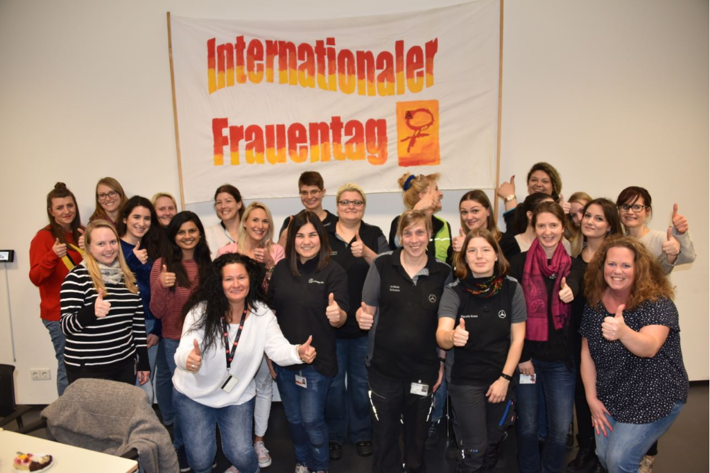 Bei den Frauencafés im Werk Untertürkheim würdigten am diesjährigen Internationalen Frauentag deshalb viele Kolleginnen und Kollegen die bisherigen großen und kleinen Erfolge auf dem Weg zur Gleichstellung von Mann und Frau. Betriebsrätinnen und Betriebsräte diskutierten bei Kaffee und Kuchen mit ihren Kolleginnen. Im Mittelpunkt stand vor allem die Frage, wie die Situation von Frauen im Betrieb und in der Gesellschaft aktuell noch verbessert werden könnte.