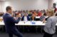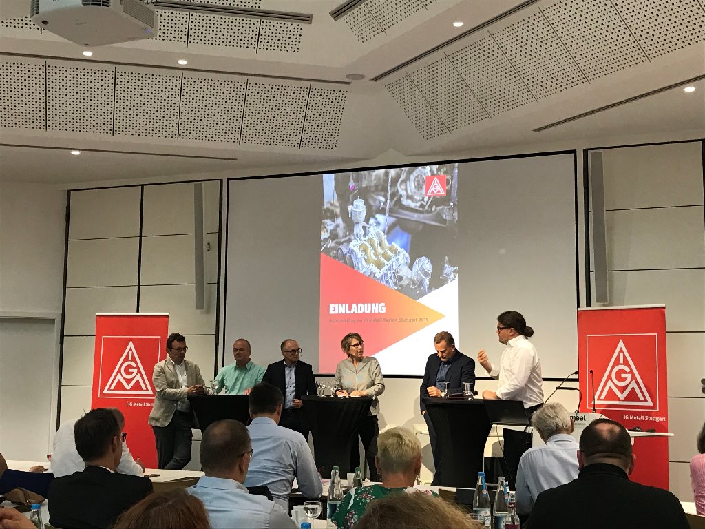 Interessiert verfolgten die teilnehmenden Daimler Betriebsräte und Vertrauensleute die abschließende Podiumsdiskussion mit Michael Ziegler, Präsident des Kfz Gewerbes BW, Jörg Heinermann, Daimler AG Vertrieb und Marketing, Roman Zitzelsberger, IGM Bezirksleiter, Sebastian Fersterra, Vorstandsmitglied IGM Res. HKM und Andreas Fiala, BR-Vorsitzender NDL Mercedes Benz, die die Auswirkungen der Digitalisierung auf das KFZ Handwerk beleuchtete.