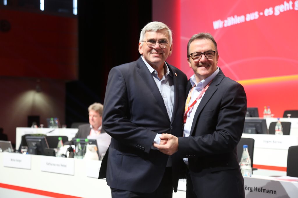 Der 24. Ordentliche Gewerkschaftstag der IG Metall in Nürnberg hat heute am 8. Oktober 2019, Jörg Hofmann mit 71 Prozent zum Ersten Vorsitzenden der IG Metall gewählt. An der Wahl haben sich 478 Delegierte beteiligt. Christiane Benner wurde mit 87 Prozent zur Zweiten Vorsitzenden der IG Metall gewählt. An der Wahl haben sich 479 Delegierte beteiligt. Jürgen Kerner wurde mit 95 Prozent zum Hauptkassierer der IG Metall gewählt. An der Wahl haben sich 479 Delegierte beteiligt.