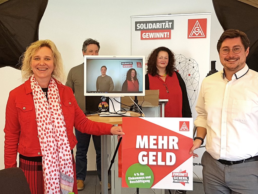 In der laufenden Tarifrunde hat die IG Metall ein Maßnahmenpaket zur Bewältigung der Herausforderungen vorgelegt. So fordert sie zur Sicherung der Arbeitsplätze, dort wo nötig, eine Arbeitszeitverkürzung mit Teilentgeltausgleich, einen tariflichen Rahmen für betriebliche Zukunftstarifverträge, ein Volumen von 4% zur Stärkung der Einkommen und tarifliche Regelungen für dual Studierende und Auszubildende zur Verbesserung der Ausbildung und der Übernahme.