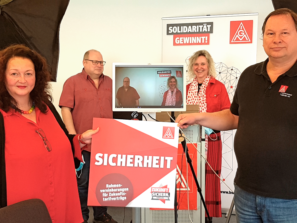 Rund 600 Beschäftigte der Stuttgarter Daimler Zentrale haben sich am digitalen Warnstreik der IG Metall beteiligt. Denn gerade bei Daimler treffen die Themen der Gewerkschaft den Nagel auf den Kopf. "Während die Dividende und die Vorstandsgehälter steigen, soll weiterhin auf Kosten der Beschäftigten gespart werden. Während der Corona-Pandemie haben die Kolleginnen und Kollegen Flexibilität bewiesen und das Unternehmen durch die Krise geführt. Deshalb ist es nun Zeit für eine faire Beteiligung und Antworten auf die drängenden Zukunftsfragen. Mit diesem Warnstreik haben wir nun gemeinsam ein Zeichen gesetzt!", nennt Carmen Klitzsch-Müller, Vorsitzende des Betriebsrats des Gemeinschaftsbetriebs der Daimler Zentrale in Stuttgart, als Gründe, warum man hinter den Forderungen der IG Metall stehe.